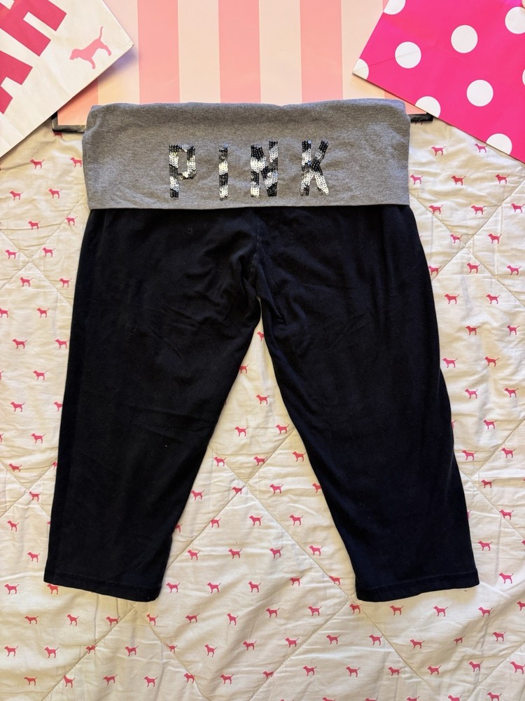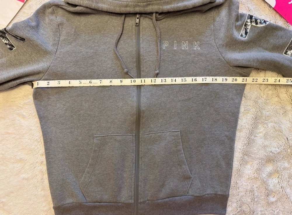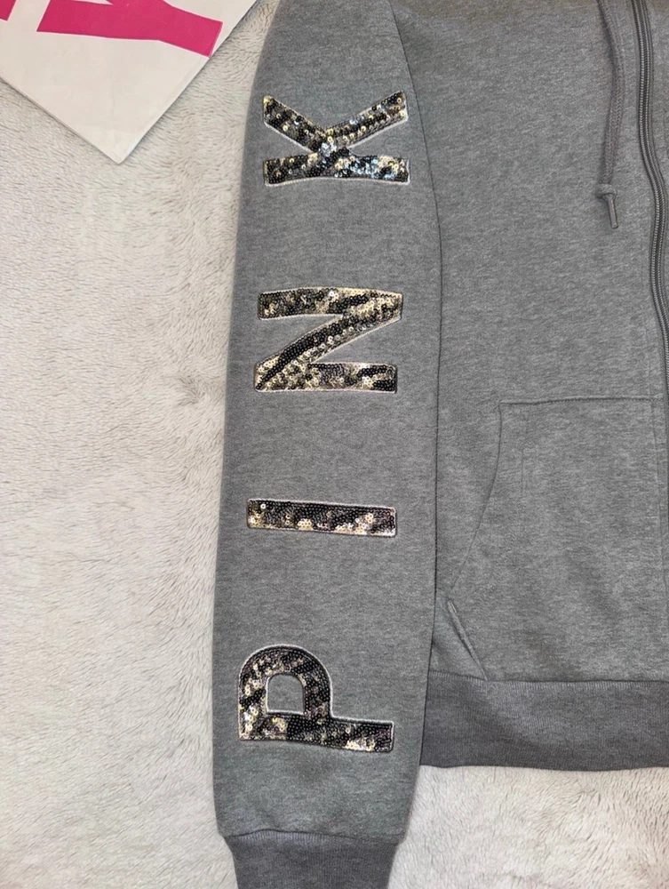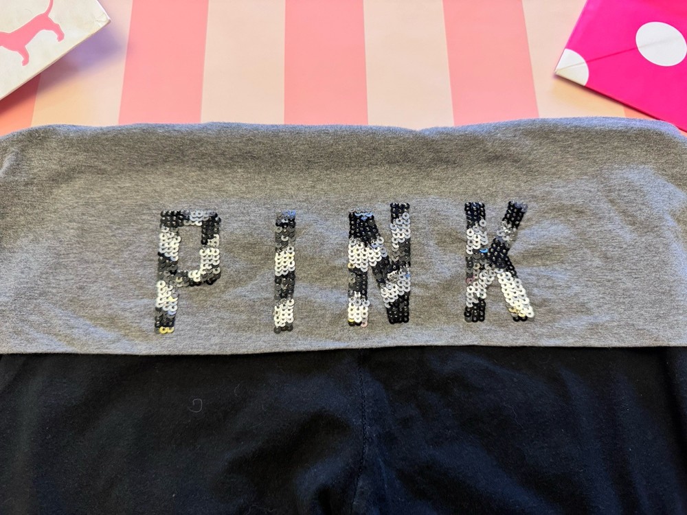 ❤️ This set includes the gray full zip hoodie (SIZE MEDIUM) and fold over capri yoga leggings (SIZE LARGE BUT RUN SMALL)! This set is very hard to find and rare! The yoga capris have the gray fold over band with the “PINK” bling zebra print logo on the back. The hoodie is gray with the “PINK” zebra print bling logo down both arms. The hoodie is in excellent like new condition! The capris are in good preowned condition! No stains, holes, rips, or major wear! ❤️ SMOKE FREE & PET FRIENDLY HOME (all my items are stored in a pet free area)! I ship the next day. But usually the same day. As long as it isn’t super late in the day, and minus Sunday’s & holidays. Any questions just ask! I also can bundle to help you save on shipping!