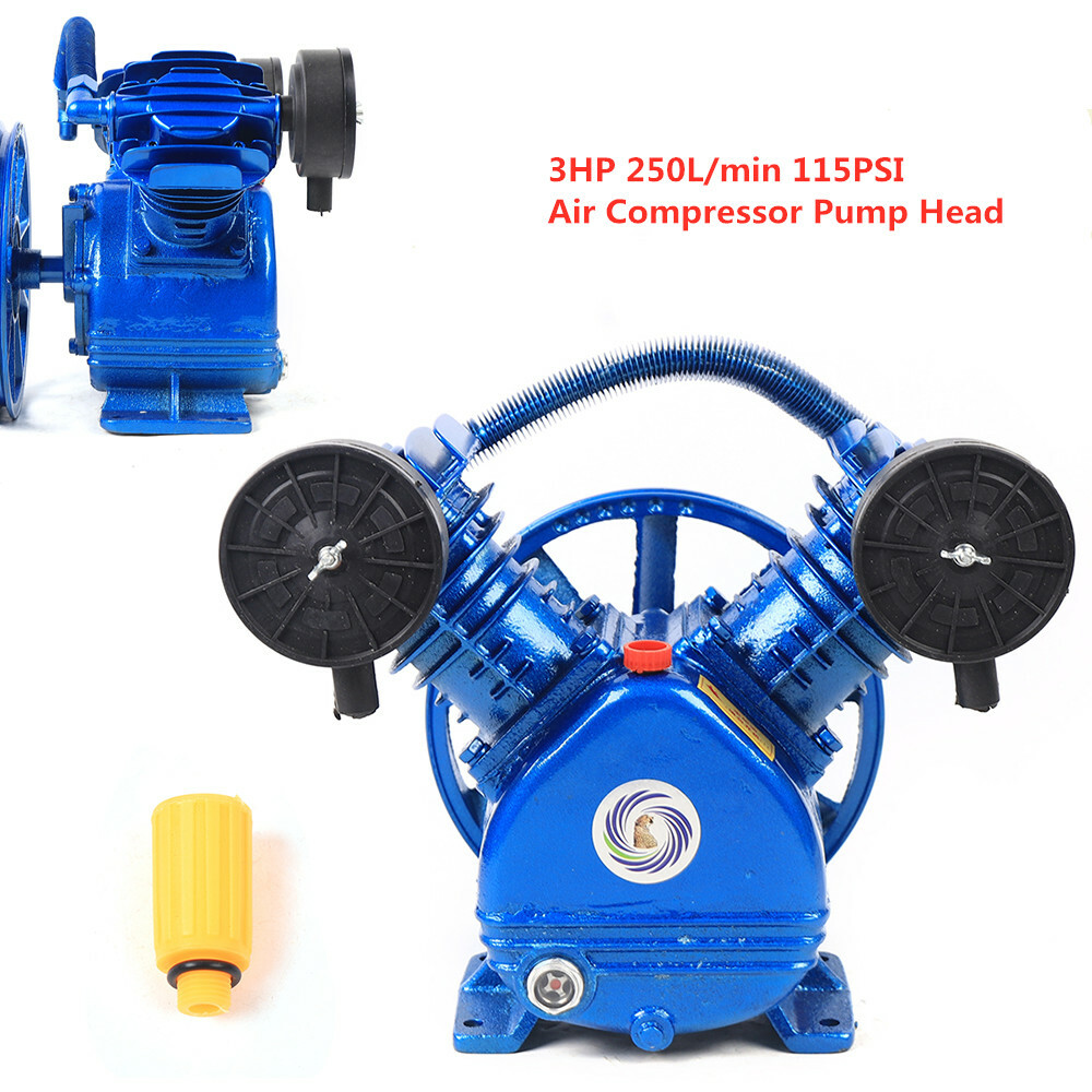 Exhaust capacity: 250L / min(8.8cfm) Type: Air Compressor Pump head Power: 2200W, 3HP Model: 3HP Air Compressor Pump Main wheel: 250mm Material: Cast Iron Frame Material: Cast Iron Discharge pressure: 8 bar(115 PSI) Horse Power: 3 hp Speed: 1050rpm Color: Blue UPC: Does not apply MPN: Does Not Apply Tank Material: Cast Iron Item Length: Does Not Apply EAN: Does not apply eBay Durapower Store Category: Air Tools Item Width: Does Not Apply * Feature *: Creative Design,Durable Material,Beautiful Appearance Cylinder: 65 * 2 size: 3hp Tank Capacity: Does Not Apply Brand: Unbranded Set Includes: Manual, Manual Drain Valve Maximum Working Pressure: 115PSI Features: Twin Cylinder, Single-Stage, Oil View Manufacturer Color: Blue Lubrication Type: Does Not Apply Voltage: Does Not Apply Pipe interface: 19mm Item Height: Does Not Apply ISBN: Does not apply gtin13: Does not apply Flow Rate: 250L / min Portability: Portable Power Source: Voltage