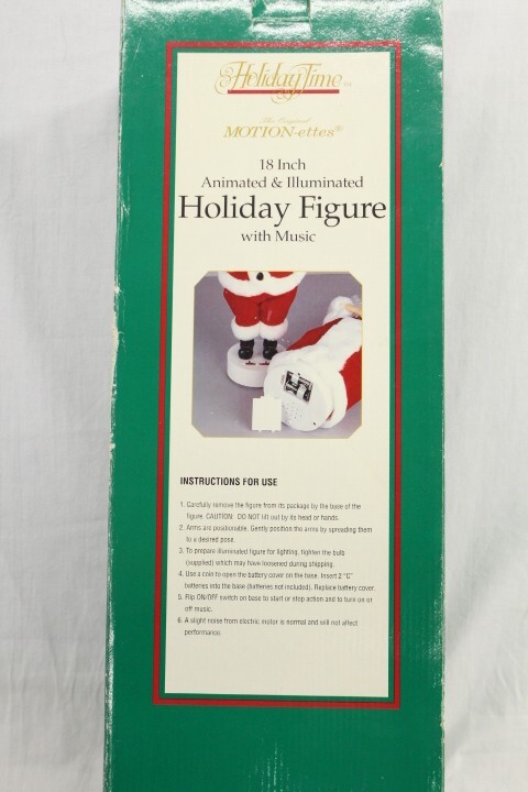 This vintage Holiday Time 18" Animated Motion-ettes Display features a musical Ms. Santa figure, perfect for Christmas decor. The motionette design brings the figure to life with animated movements, adding a festive touch to any holiday display. The red color and traditional Ms. Claus subject make this collectible figurine a charming addition to your holiday decorations.