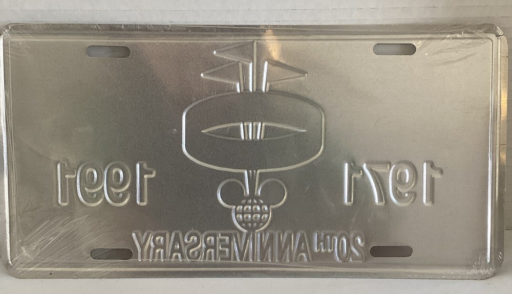 This vintage Disney World 20th anniversary license plate is a must-have for collectors! Still sealed with classic branding, it’s a nostalgic treasure. Though it has minor wear like a scratch and small hole (shown in pics), it’s a rare find perfect for Disney fans who love retro memorabilia. A charming piece of theme park history!