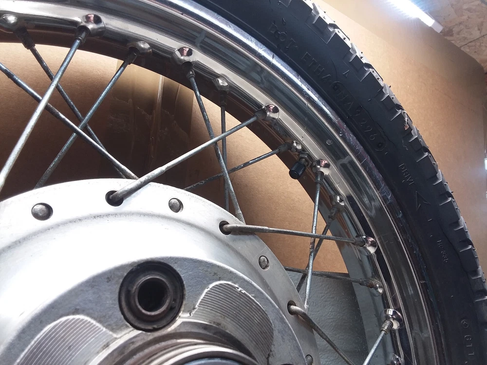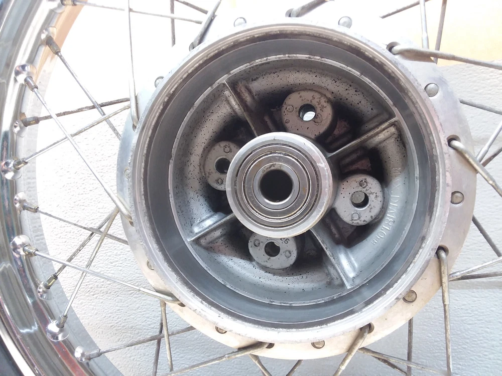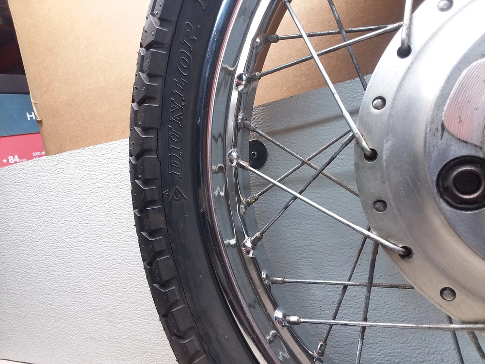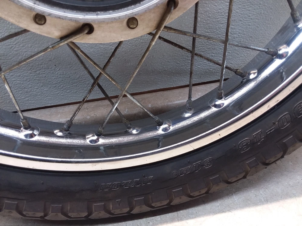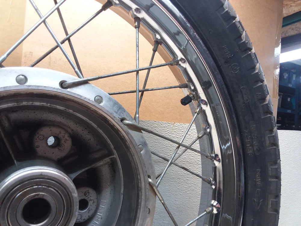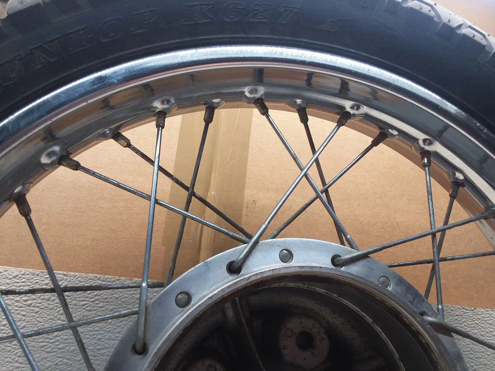 *Used item advertised entirely per pictures, please read the below description and view all pictures carefully. Thanks! TIRE IS BAD, CRACKING FROM OLD AGE. NOT HOLDING AIR. CHROME LOOKS DECENT. SOME SCUFFS, SCRATCHES TIRE IRON MARKS , PITTING AND RUST IS VISIBLE. WHEEL BEARINGS MOVE FREELY. WHEEL SPINS PRETTY STRAIGHT BUT NOT PERFECT. ITEMS MAY HAVE DAMAGE! SEE PICTURES! Could be in the form of scrapes, scratches, road rash, scuffs, spots of corrosion or surface rust, pits, pit specks, oxidation spots/stains from moisture and age, dirt/grime spots or build up, oil residue spots, breaks, cracks, dents, dings, holes, punctures, missing pieces. Or other types of blemishes usually caused from normal use, wear and age. SEE PICTURES DUE TO THE NATURE OF USED MOTORCYCLE PARTS AND THEIR CONDITIONS' BEING SO DIVERSE WE FEEL THE BEST AND MOST EFFICIENT WAY TO SELL AN ITEM IS TO SELL AS IT IS SEEN IN REAL LIFE, PER PICTURES! WE TAKE MANY PICTURES TO SHOW AND ADVERTISE EACH ITEM IN ITS ENTIRETY! NO ADDITIONAL INSPECTIONS, PICTURES OR MEASUREMENTS WILL BE AVAILABLE. WE APOLOGIZE FOR ANY INCONVENIENCES. IMPORTANT! PLEASE READ! Payments are due within 4 days of purchase. ATTENTION INTERNATIONAL CUSTOMERS!!: Import duties, taxes and charges are not included in the item price or shipping charges. These charges are the buyer's responsibility. These charges are normally collected by the delivering freight (shipping) company or when you pick the item up – do not confuse them for additional shipping charges. Please check with your country's customs office to determine what these additional costs will be prior to bidding/buying. ATTENTION!!! Please contact us if the parts you received are not as described. We will do our best to solve any problems. Thank you so much for your interest and viewing our parts!!
