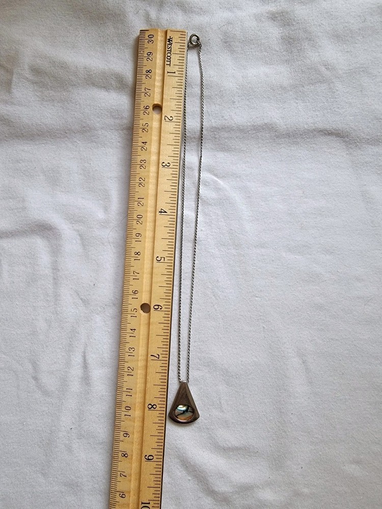 This VTG 1980s Park Lane silver tone Mother of Pearl necklace features an asymmetrical pendant with an oval-shaped main stone. The necklace is signed, made with natural materials, and has a lobster closure. The modernist style and vintage charm make it a unique piece of jewelry, perfect for adding a touch of sophistication to any outfit. The multicolor Mother of Pearl shell material adds texture and interest to the chain design, making it a standout accessory for any jewelry collection.