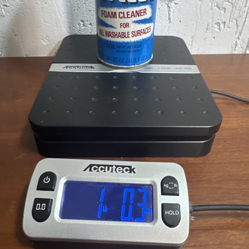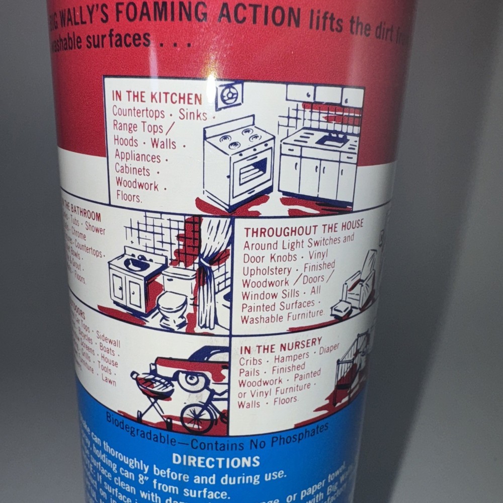 Vintage Johnson wax big Wally foam cleaner for all washable services. 20 ounce bottle physically weighs in just over a pound. Awesome retro design on the can! Reach out with any questions thank you!