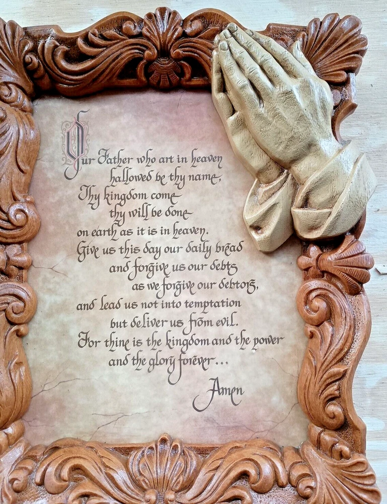 VTG 3D Frame With Picture The Lord's Prayer With Praying Hands Wall Art Is Mint