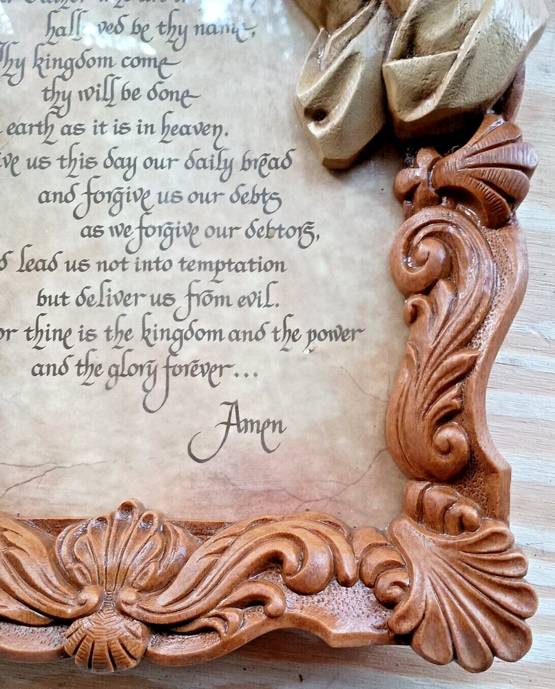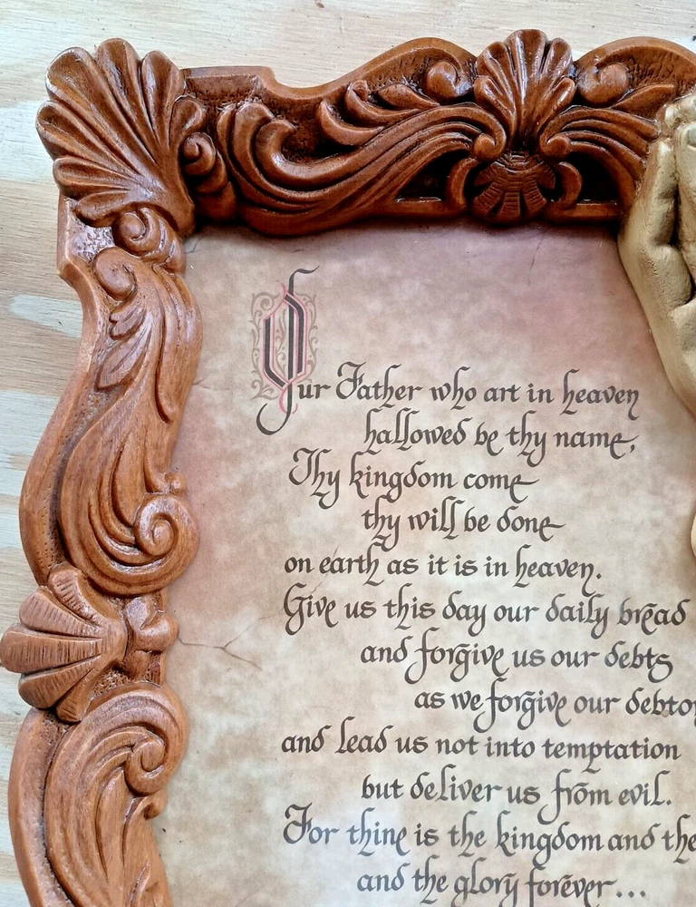 This vintage 3D frame with picture is a beautiful addition to any room. The framed plaque features the Lord's Prayer with praying hands in a multicolor design. Measuring 10 inches in length, 12 inches in height, and 2 inches in width, this medium-sized plaque is made of lacquered resin with a bordered pattern. The frame can be hung or wall-mounted, and it comes with additional parts required. This piece of art is perfect for those who appreciate vintage/retro styles and want to add a touch of prayer to their home decor. The plaque is customized-free and has no personalization features.