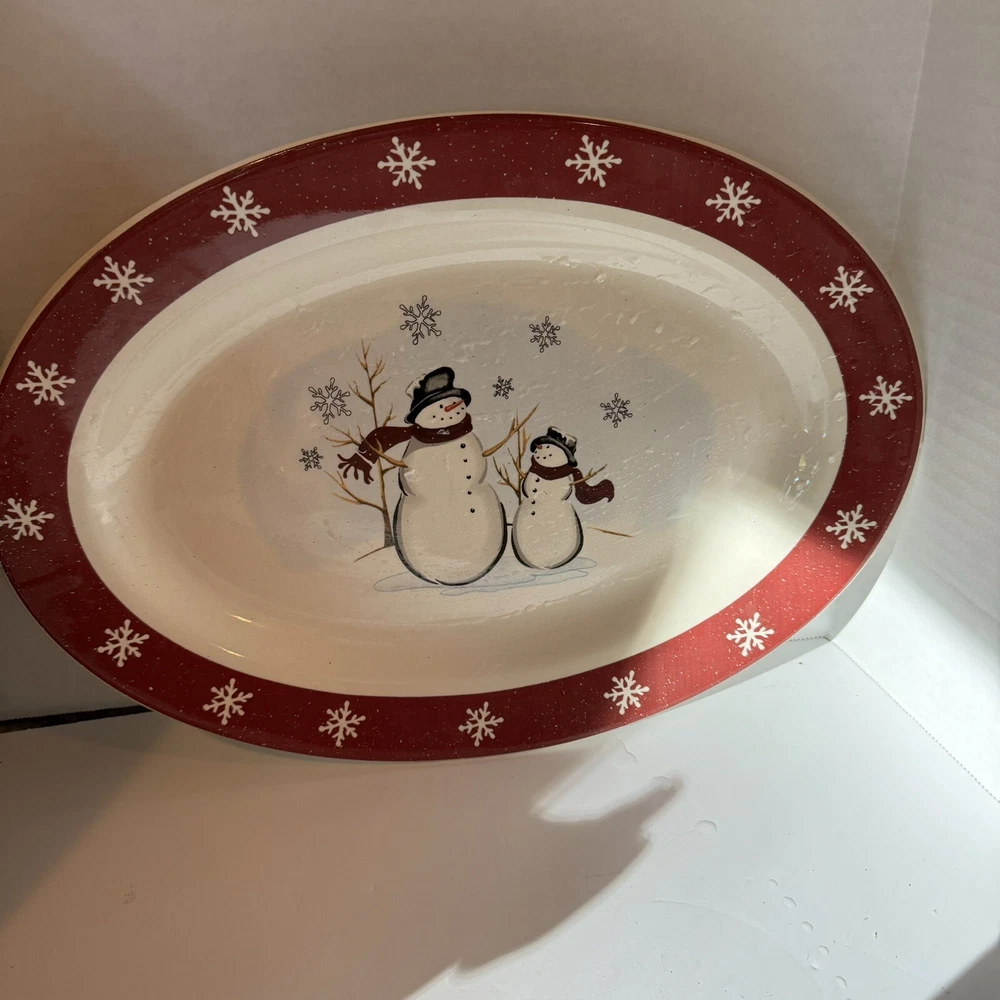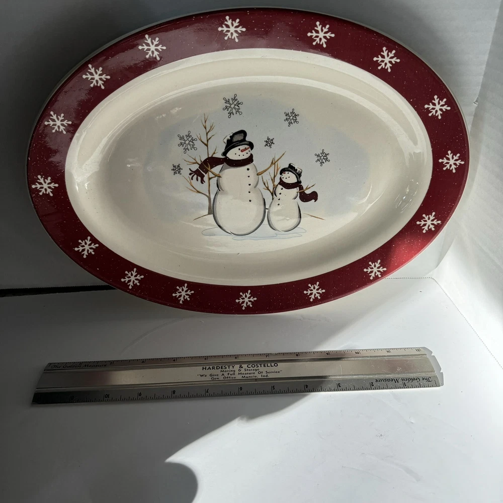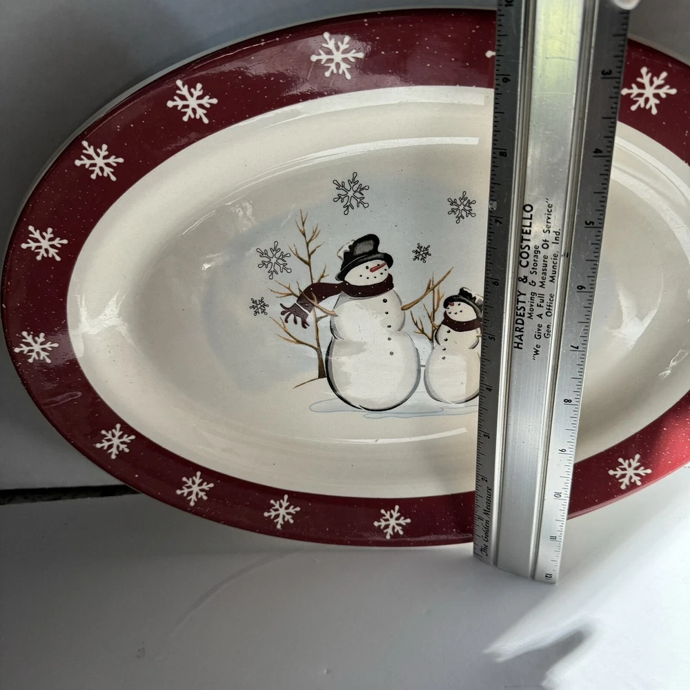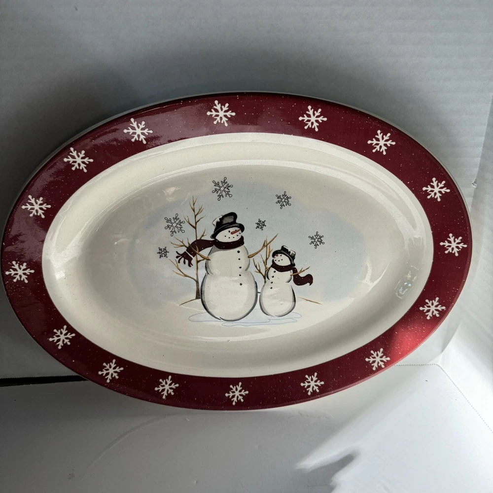 Title: Royal Seasons 5-Piece Snowman Christmas Set - 14” Platter, Salt & Pepper Shakers, Butter Dish Description: Bring festive cheer to your holiday table with this charming Royal Seasons snowman-themed set! This five-piece collection includes a 14-inch platter, salt and pepper shakers, and a butter dish, all adorned with delightful snowman and snowflake designs on a red and white background. Perfect for holiday dinners and gatherings, this set is a must-have for creating a warm, seasonal atmosphere. Condition: Excellent, with no chips or cracks. Photos show the actual items you’ll receive, so please examine them closely for details on condition and design. I ship within 24 hours of purchase, except on weekends and holidays. I also offer combined shipping, so be sure to check out my other listings! Follow my store, VintageWowzers, for daily updates as I add more vintage treasures. Keywords: Royal Seasons snowman set, Christmas dinnerware, holiday platter, vintage holiday decor, seasonal tableware, snowman butter dish, salt and pepper shakers, festive serveware, snowflake platter, holiday kitchen decor