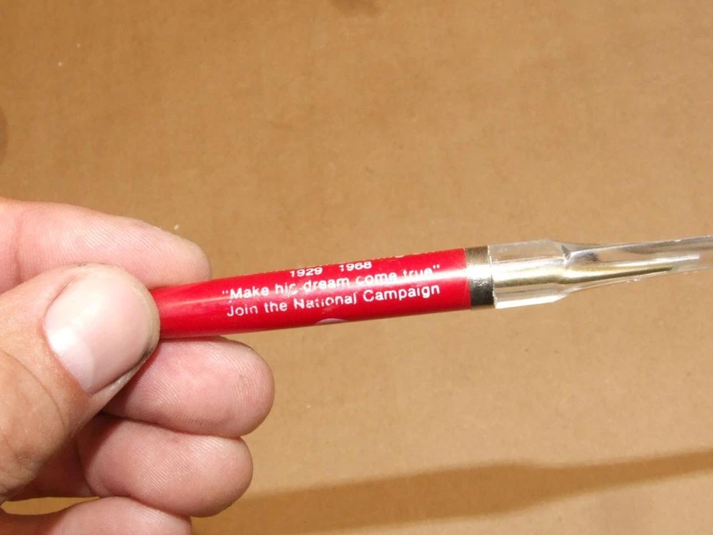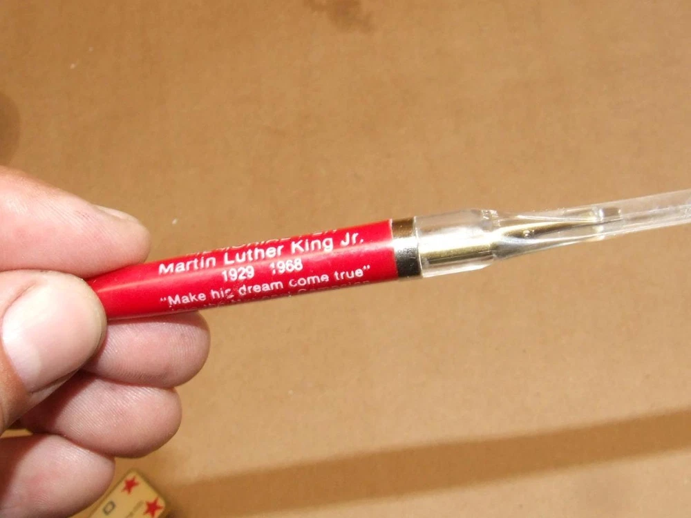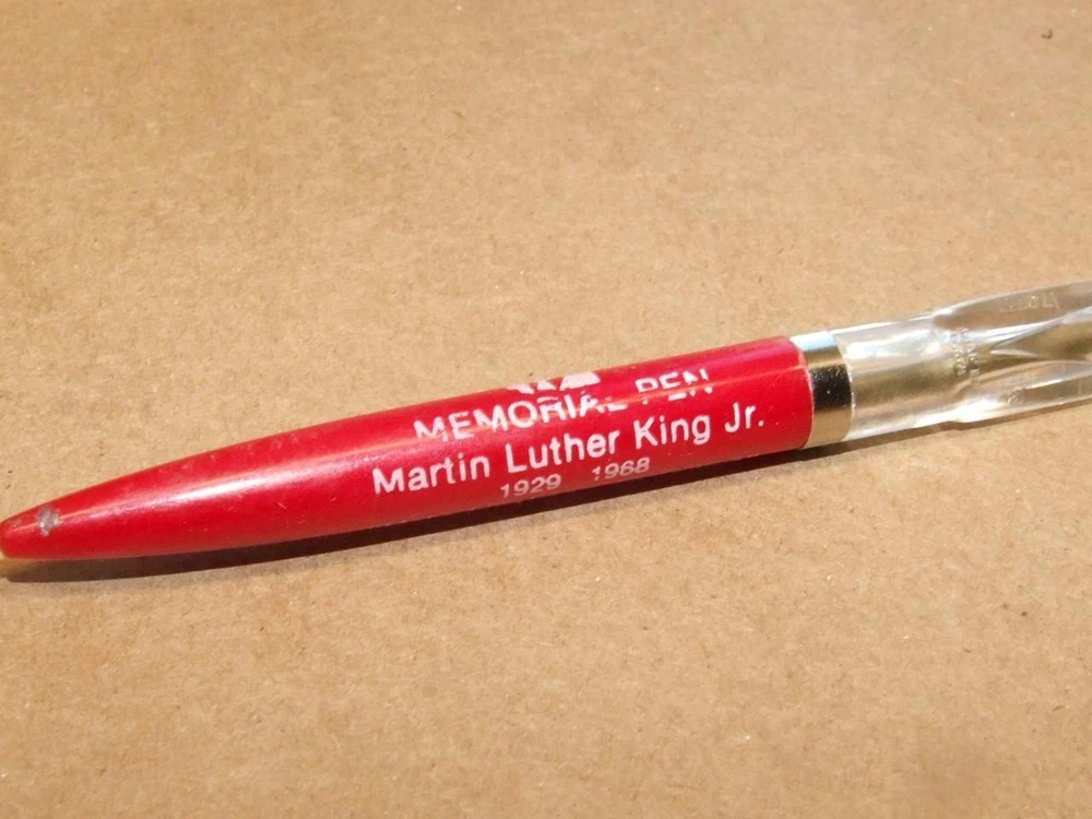 Fair Vintage Condition...Some Lettering Loss & Damage to the Letter Opener...Ink Cartridge is Dried Out... Please See Pictures... 1968 Martin Luther King Memorial Pen... Has a Letter Opener with a Ruler & Millimeter Measure... Measures 7 & 1/2 inches Long... VTG 60s Martin Luther King JR Memorial Pen Letter Opener & Ruler - Dry Needs TLC VTG 60s Martin Luther King JR Memorial Pen Letter Opener & Ruler - Dry Needs TLC Click images to enlarge Description An Estate of Mind is Your Passage Way to the Past ... VTG 60s Martin Luther King JR Memorial Pen Letter Opener & Ruler - Dry Needs TLC ... Fair Vintage Condition...Some Lettering Loss & Damage to the Letter Opener...Ink Cartridge is Dried Out... ...Please See Pictures... ...1968 Martin Luther King Memorial Pen... ...Has a Letter Opener with a Ruler & Millimeter Measure... ...Measures 7 & 1/2 inches Long ... ...VERY COOL!... ... NICE DESIGN... ...GREAT FIND... ...A nice piece to add to your collection... Enjoy the low opening bid with NO RESERVE so have Fun GOOD LUCK! View My Other Items For Sale Payment Paypal is Preferred. Buyer to pay shipping cost. Shipping HAPPY TO COMBINE ORDERS to save on shipping charges! Terms of Sale * We make every effort to describe all items accurately and honestly, also showing many pictures for you to see. If you are unhappy in any way, Please contact us before leaving a Neutral or Negative Feedback! We like to have Happy Customers!! Thank you! About Us Estate Jewelry Finds and More!! Contact Us The Best Way to Contact us with any questions or concerns is directly through the item itself under "ask a question" at the bottom of the page! Get images that make Supersized seem small. Showcase your items with Auctiva's Listing Templates! THE simple solution for eBay sellers. Track Page Views With Auctiva's Counter