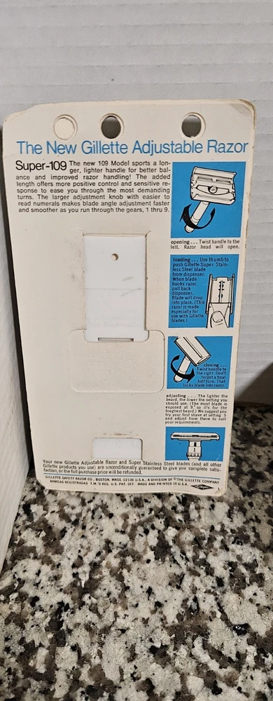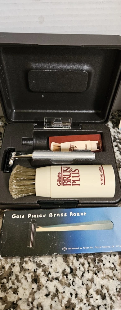 The product is a vintage Gillette adjustable razor from the 60s-70s, featuring a gold plated brass design. It comes with a set of razor blades, providing a classic and nostalgic shaving experience. The adjustable feature allows for a customizable shave, making it a versatile option for collectors or those looking to try a retro shaving method. With the renowned Gillette brand behind it, this razor is sure to offer quality and precision in each shave.