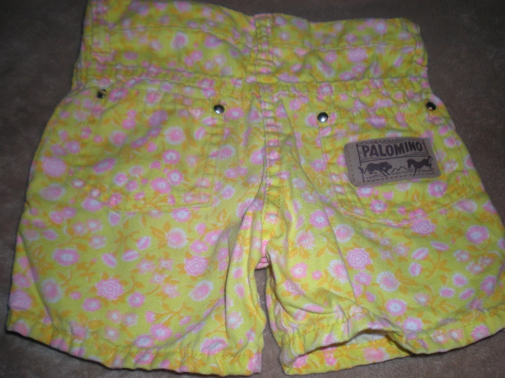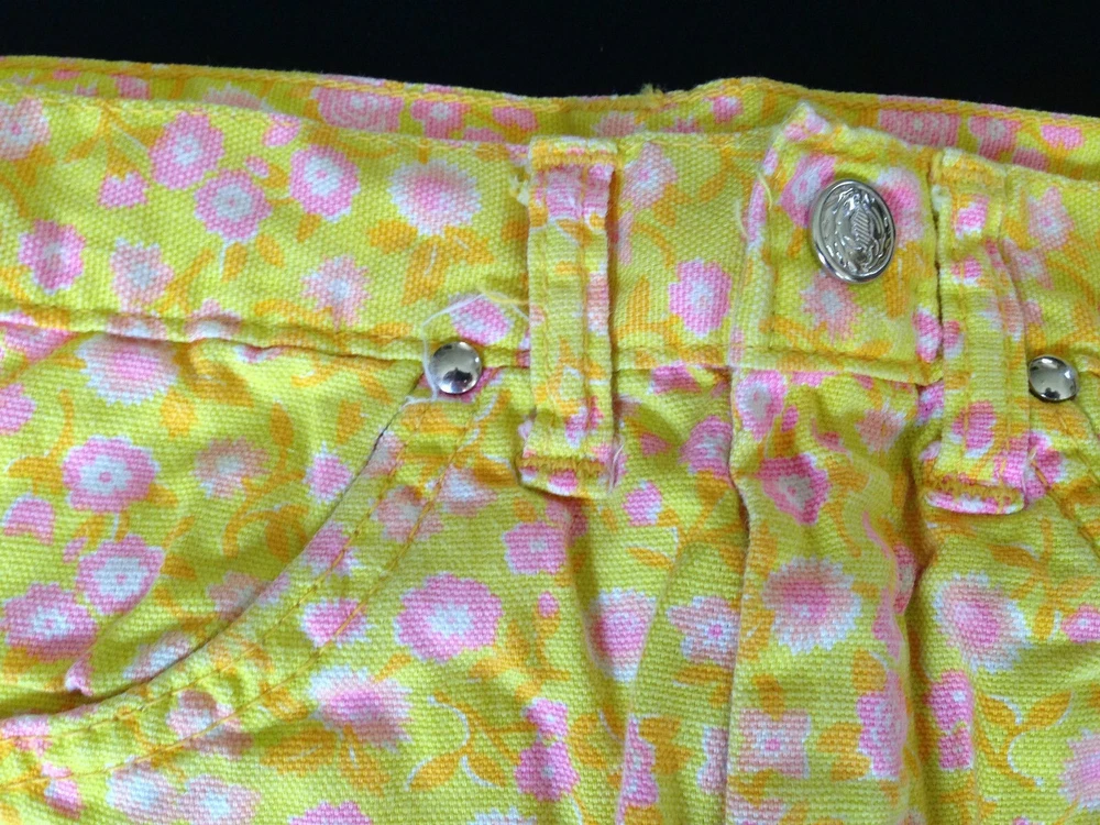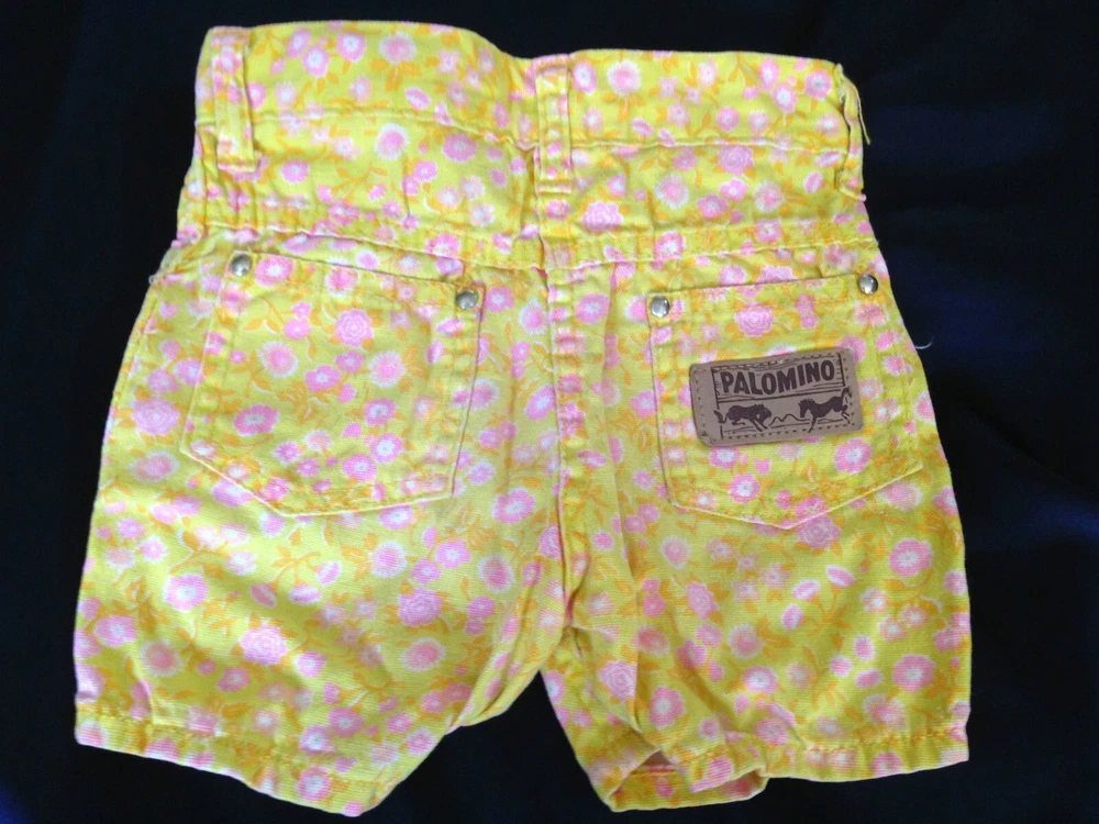 Vintage girls bright yellow with pink flowers shorts. There's no size tag - I think these are a size 4: waist is 21". There's a very small light smudge on the front thigh, otherwise excellent condition. Buyer pays shipping. 14 day money back returns accepted upon receipt of returned item. Buyer pays return shipping. Paypal preferred. Payment expected w/in 1 days of auction close. Shipping w/in 2 business days of completed payment. Please feel free to ask questions or for additional photos. Powered by SixBit's eCommerce Solution