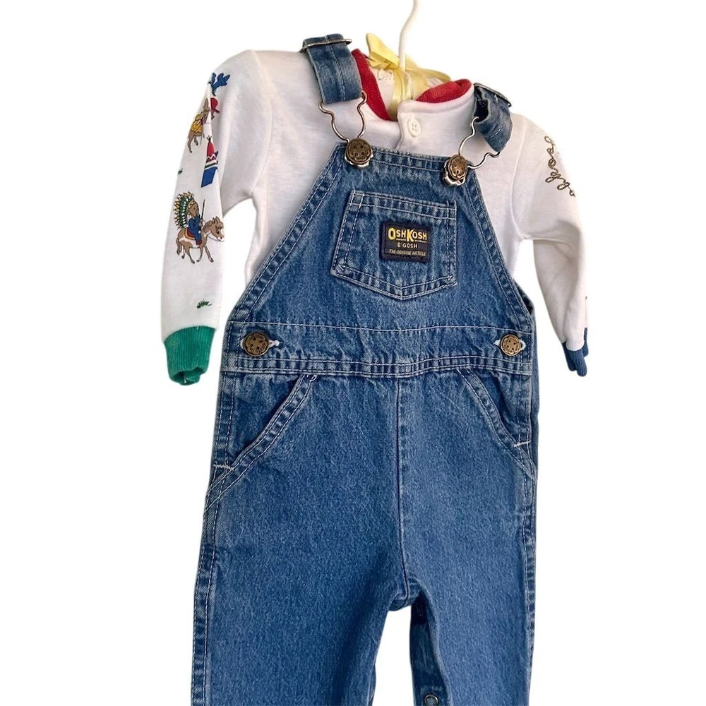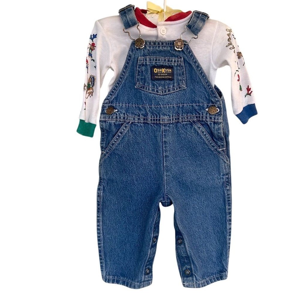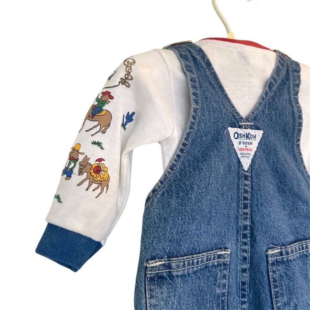 VTG 80s OshKosh B’Gosh Baby Western Cowboy Wild West Denim Overalls Outfit 6 Mo