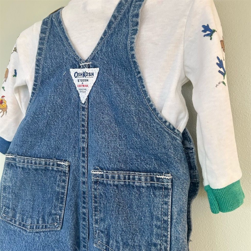 Garment Care: Machine Washable Style: Overall Type: One-Piece Season: Spring, Summer, Fall Size: 6-9 Months Number of Pieces: 2 Piece Department: Boys Closure: Snap Color: Blue Handmade: No Theme: 90s, Cowboy, Western Character: Boy Neckline: Square Neck Brand: OshKosh B’gosh Vintage: Yes Sleeve Length: Long Sleeve Occasion: Casual Personalize: No Fabric Type: Denim
