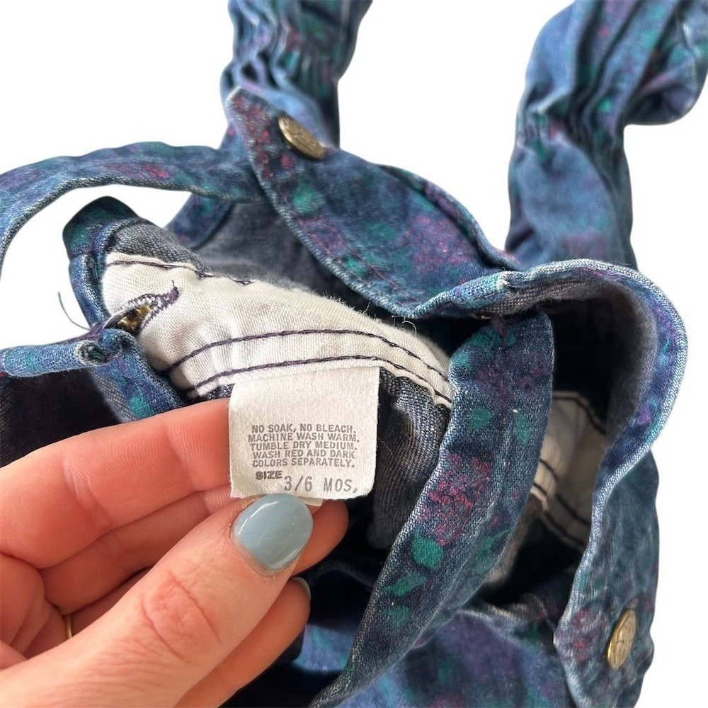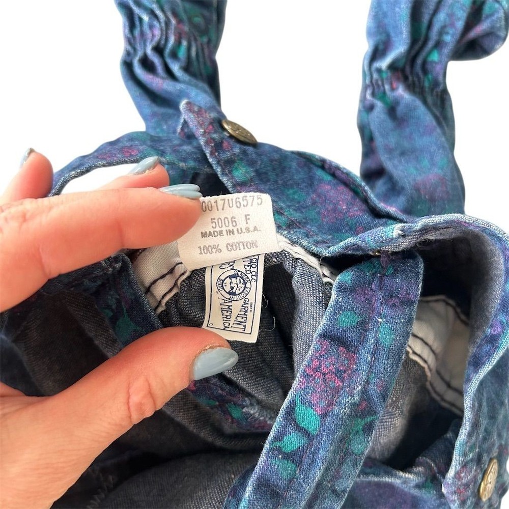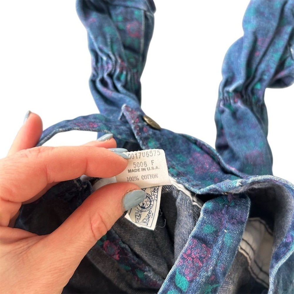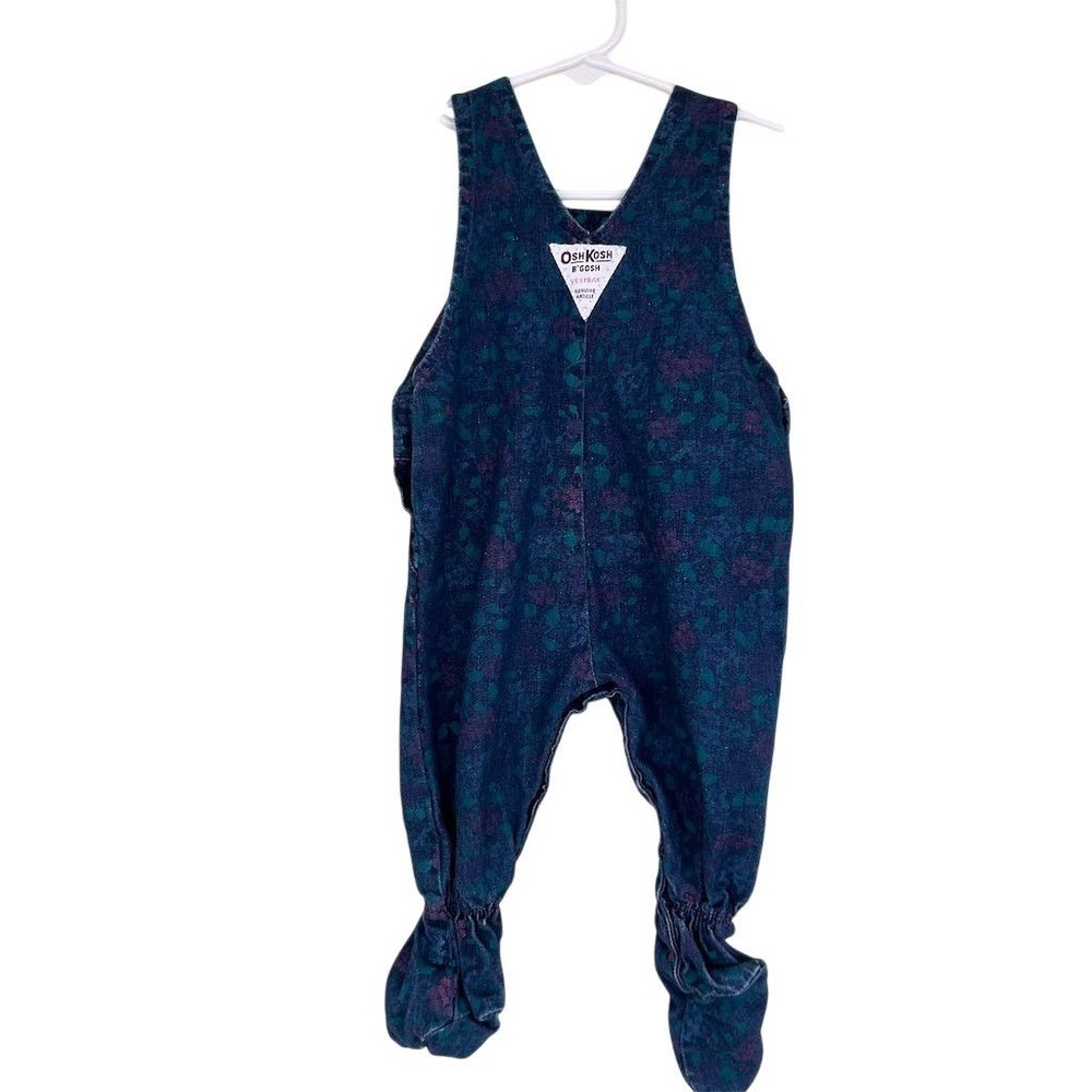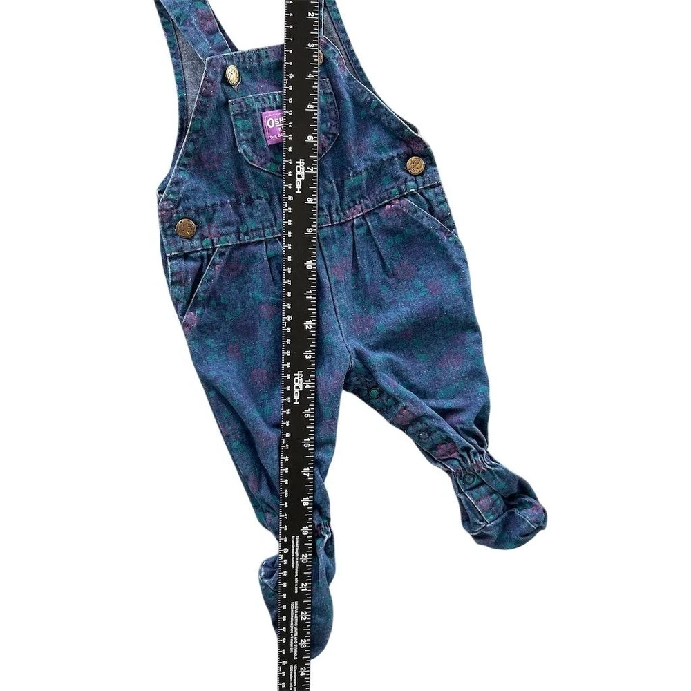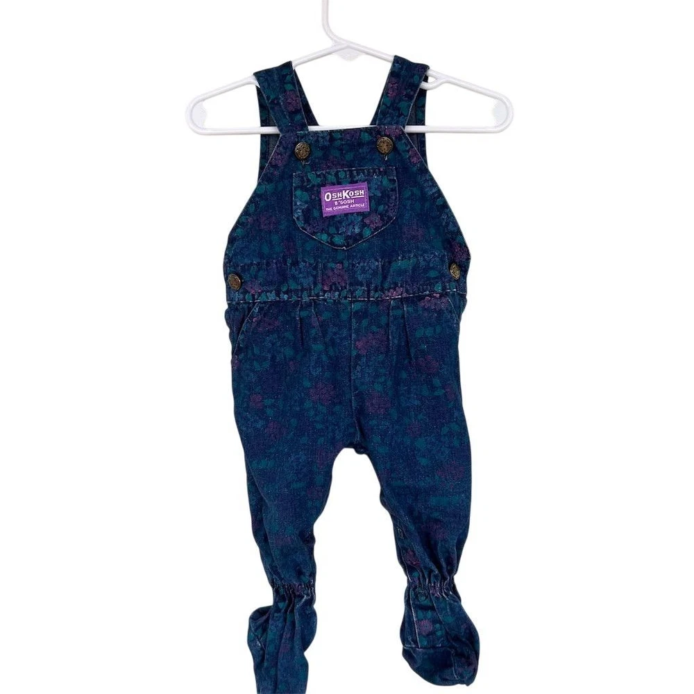 VTG 80s Union USA Made OshKosh B'gosh Girls Floral Denim Overalls Sz 6-9 Months