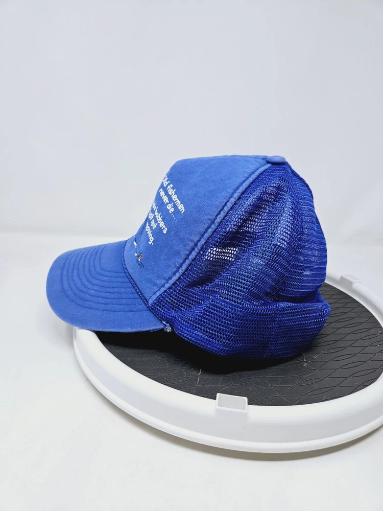 VTG 90s Fishermen Never Die Bobbers Quit Trucker Hat Funny Fishing Mesh Rope
