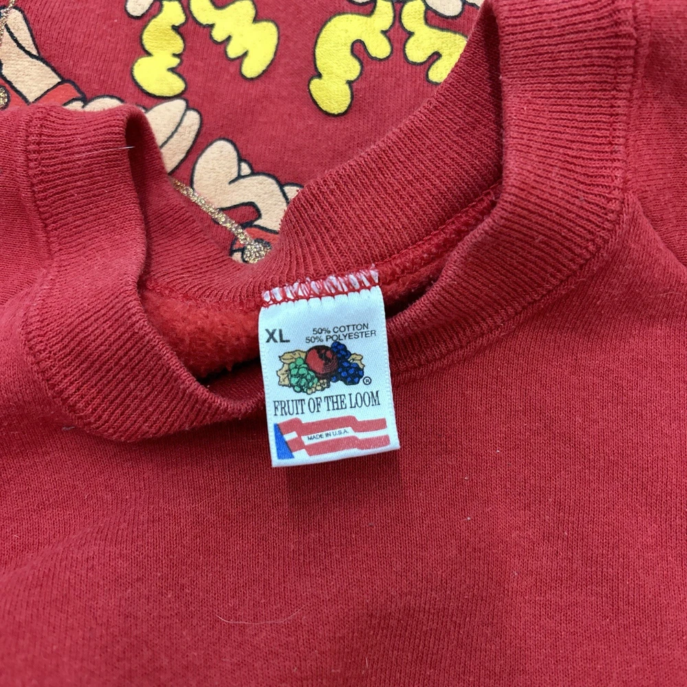 Season:Spring, Fall, WinterPattern:Graphic PrintGarment Care:Machine WashableTheme:90sSize:XLSize Type:RegularColor:RedDepartment:MenStyle:PulloverVintage:YesNeckline:Crew NeckType:SweatshirtMaterial:CottonCountry/Region of Manufacture:United StatesFeatures:Graphic Print, All Seasons, BreathableBrand:Fruit of the Loom