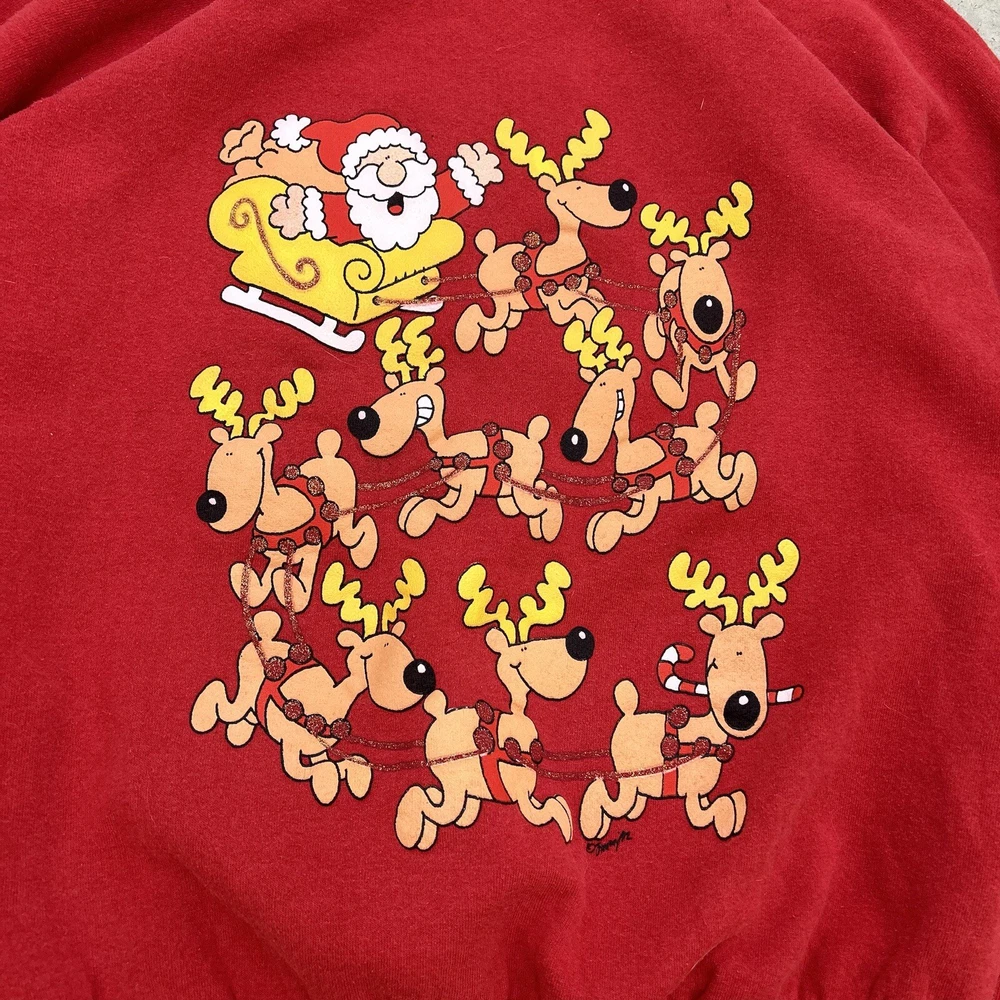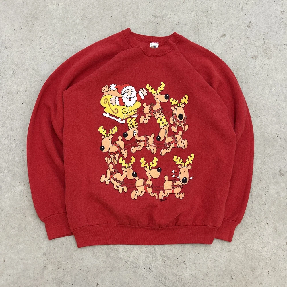 HomeVTG 90s Fruit Of The Loom Santa Reindeer Christmas Pullover Sweatshirt Men’s XL
