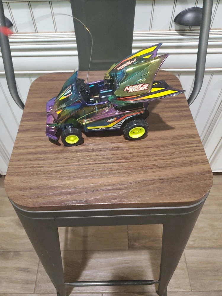 This vintage RadioShack Night Racer creature RC radio controlled car is a must-have for collectors and racing enthusiasts alike. With its multi-colored design and toy grade model grade, this car is sure to stand out on any track. The electric fuel type allows for easy and convenient use, while the vintage aspect adds a unique touch to any collection. The Night Racer model is perfect for those who enjoy racing and control line toys. This car is a great addition to any collection and is sure to bring back memories of childhood playtime. Don't miss out on the opportunity to own this piece of nostalgia.