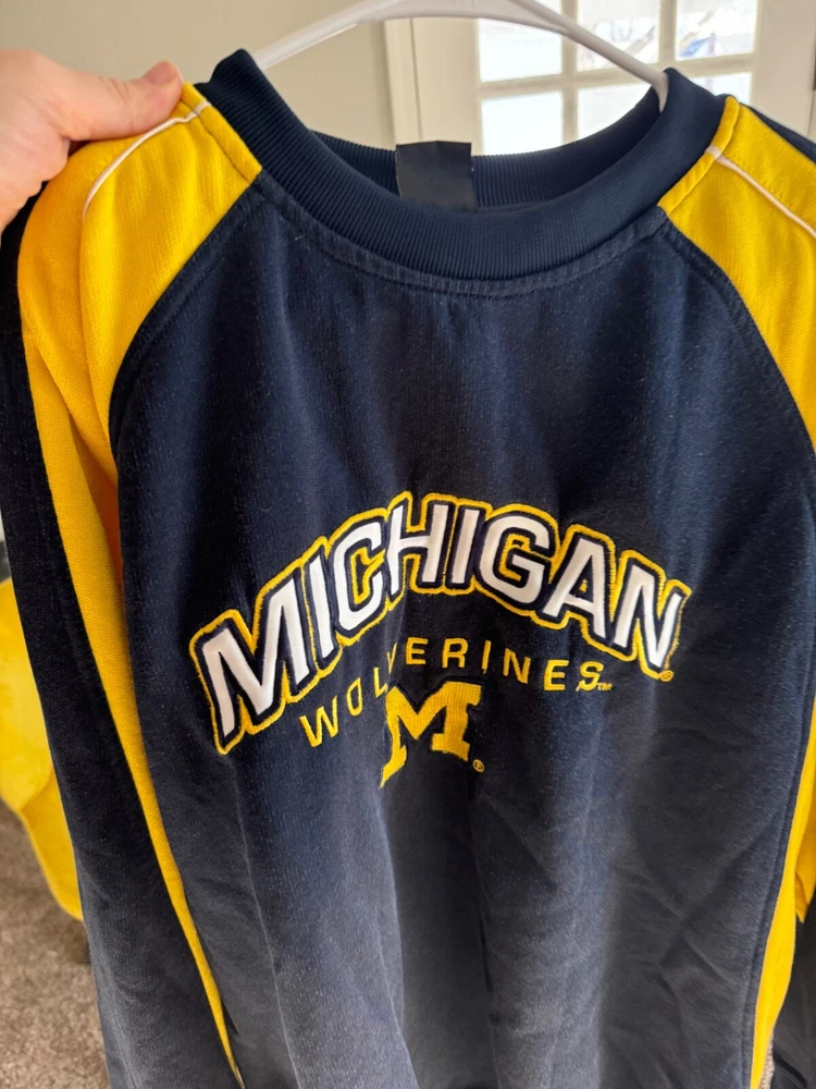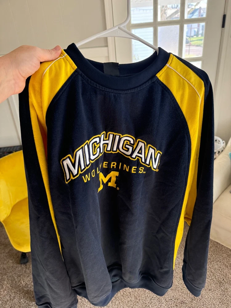 Elevate your wardrobe with the VTG 90s Starter Men's XL Michigan Wolverines Color Block Crewneck Sweatshirt. A vibrant blend of colors sets this sweatshirt apart, capturing the essence of the '90s era. Stitched with care, it features the iconic Michigan Wolverines logo, making it a standout piece for any fan or collector. Crafted for comfort and style, the pullover design ensures easy wearability, while the regular fit offers a relaxed feel. Whether you're out for a casual meet-up or just lounging at home, this vintage sweatshirt brings a touch of nostalgia to your outfit.