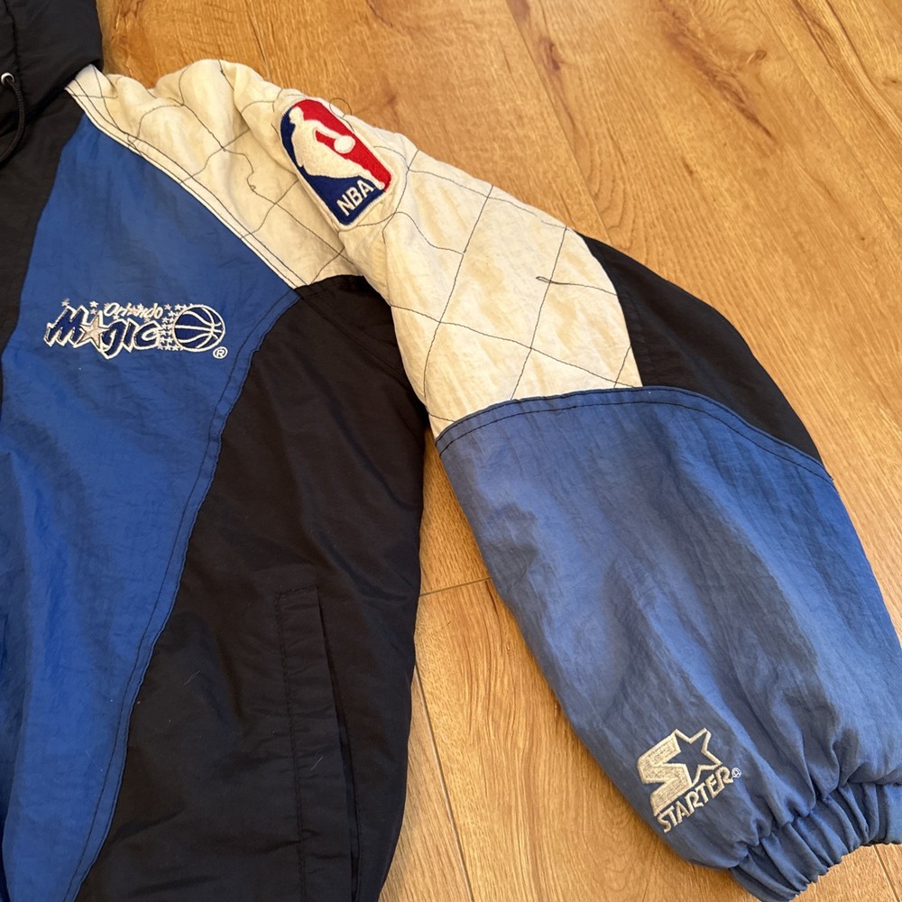 Officially Licensed:YesTeam:Orlando MagicCountry of Origin:Korea, Republic ofSize:LLeague:National Basketball Association (NBA)Color:Black / White / BluePre & Post Season:Regular SeasonSport:BasketballProduct:JacketBrand:StarterGender:Unisex Adult