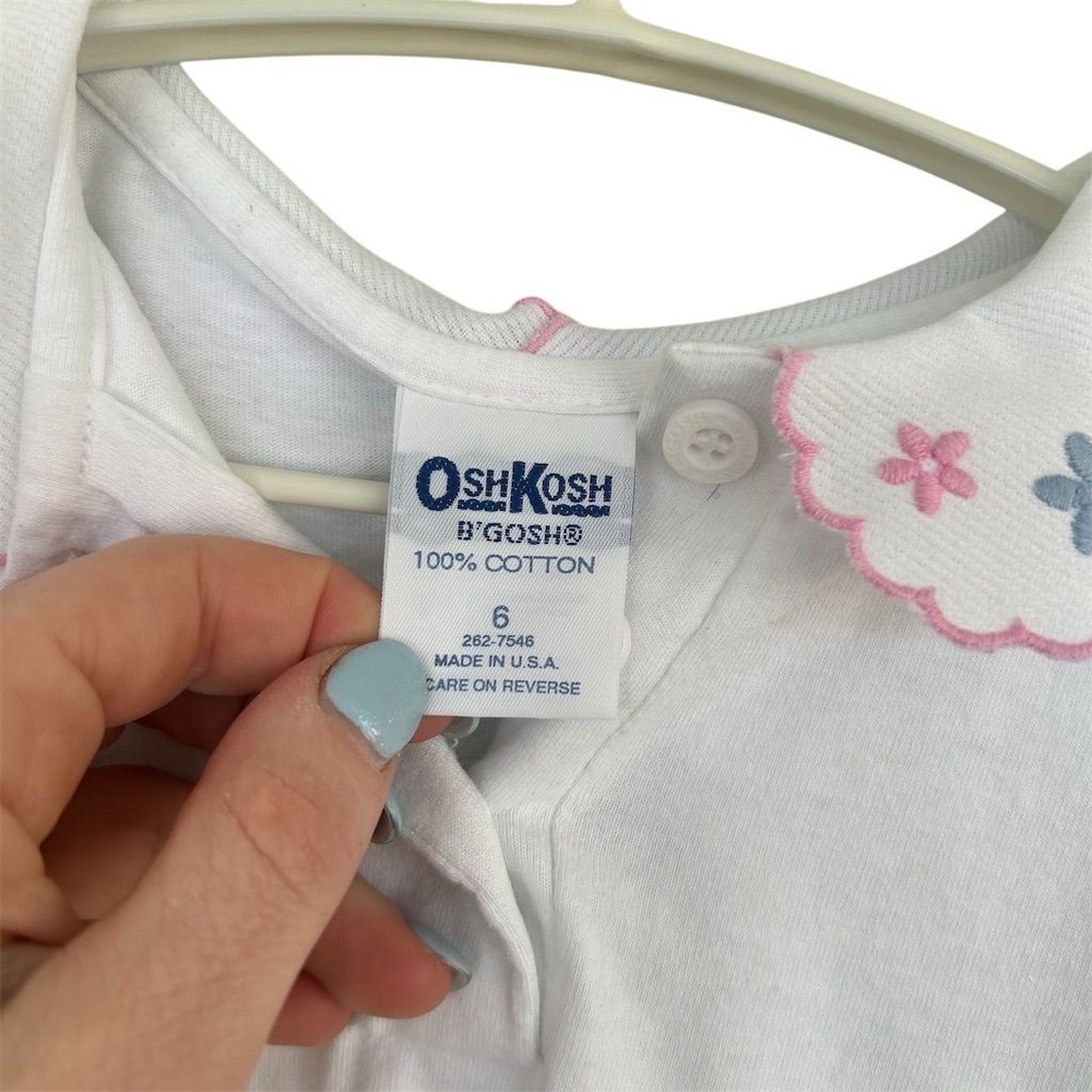 Color: White Season: Fall Features: Elasticized Cuffs,Scallop Collar Size: 6 Brand: OshKosh B'gosh UPC: Does not apply Department: Girls Occasion: Casual Sleeve Length: Long Sleeve Pattern: Floral Material: 100% Cotton Theme: Floral Type: Blouse Garment Care: Machine Washable gtin13: Does not apply