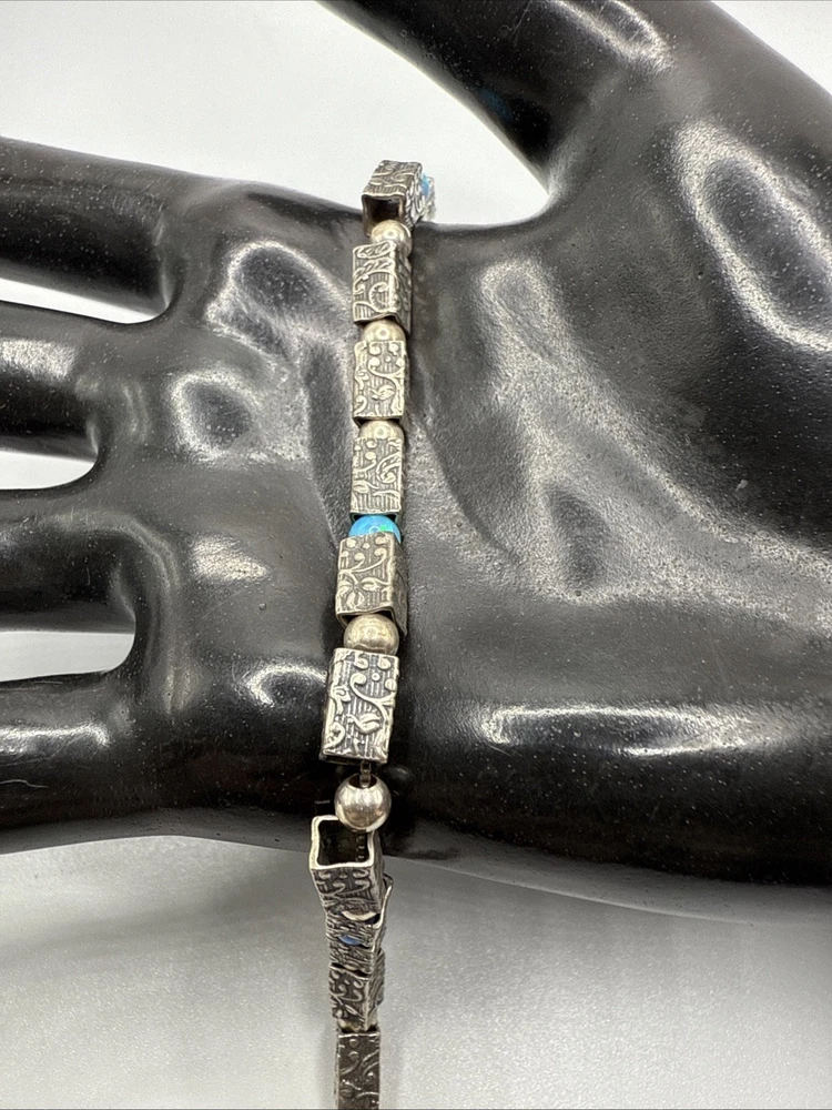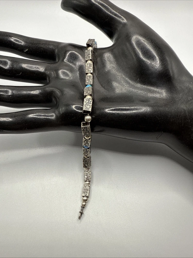 This 925 sterling silver bracelet weighs 11.4 grams and is 8” long. Very Nice condition, some scuffs and scratches, needs a polish. PLEASE CHECK OUR OTHER AUCTIONS AS WE HAVE A LARGE COLLECTION OF SOUTHWEST STERLING JEWELRY. ALL LISTINGS STARTING AT .99 NO RESERVE . PLEASE FEEL FREE TO ASK ANY QUESTIONS . THESE ITEMS ARE VINTAGE OR ANTIQUE AND SHOW SOME SORT OF USE NONE ARE BRAND NEW. WE DO ACCEPT RETURNS IF NOT AS DESCRIBED! WE DO COMBINE AUCTIONS THANK YOU. SEEMS SHIPPING IS GONE UP RECENTLY THIS IS NOT DUE TO US BUT A CHANGE IN SHIPPING POLICY FROM USPS. PLEASE NOTE FOLLOWING NOTICE. THANKS. USPS Ground Advantage prices increased on July 13, 2025, with an average increase of approximately 7.1% . Additionally, a temporary holiday surcharge of up to $5.75 per package for certain weight and zone combinations was implemented on October 5, 2025, and will last through January 18, 2026. These increases are to help with market competitiveness and cover additional costs during the peak season