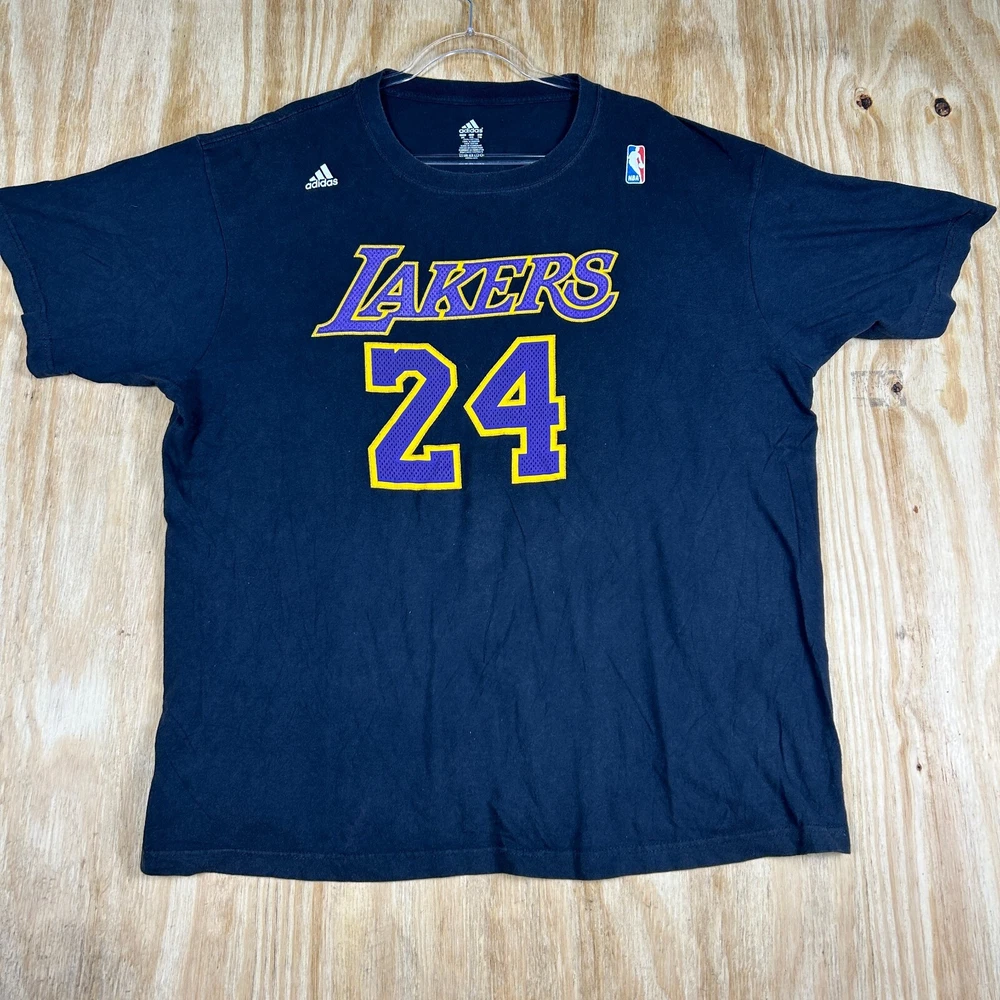 Show your love for the Los Angeles Lakers and the late Kobe Bryant with this vintage Adidas Black Mamba #24 crewneck t-shirt. The shirt features Bryant's iconic number and is officially licensed by the National Basketball Association (NBA). It is made of high-quality materials and has a comfortable fit, making it perfect for regular wear. This shirt is a must-have for any basketball fan and is great for wearing to games or just around town. It is available in men's size 2XL and is made in Honduras. Get your hands on this piece of fan apparel and show your support for the Lakers and Kobe Bryant. SKU: FB-06-61