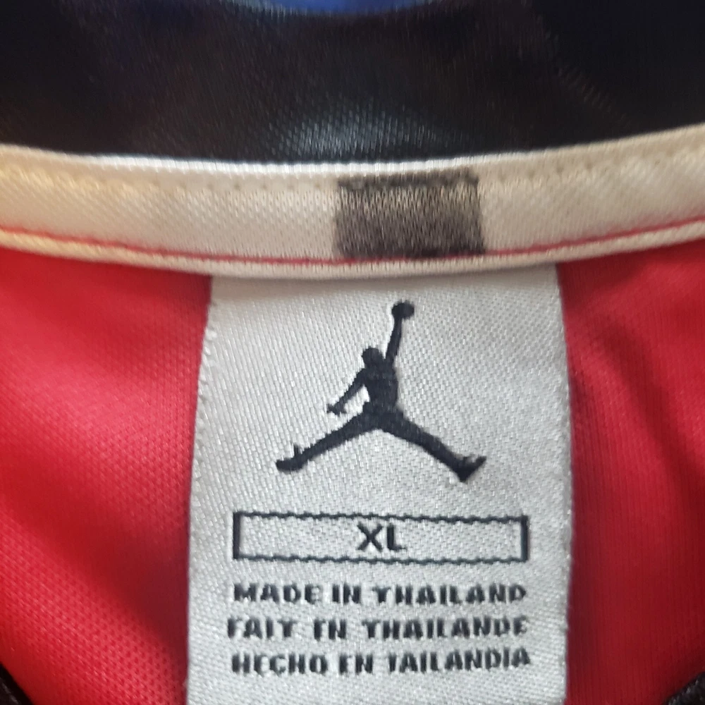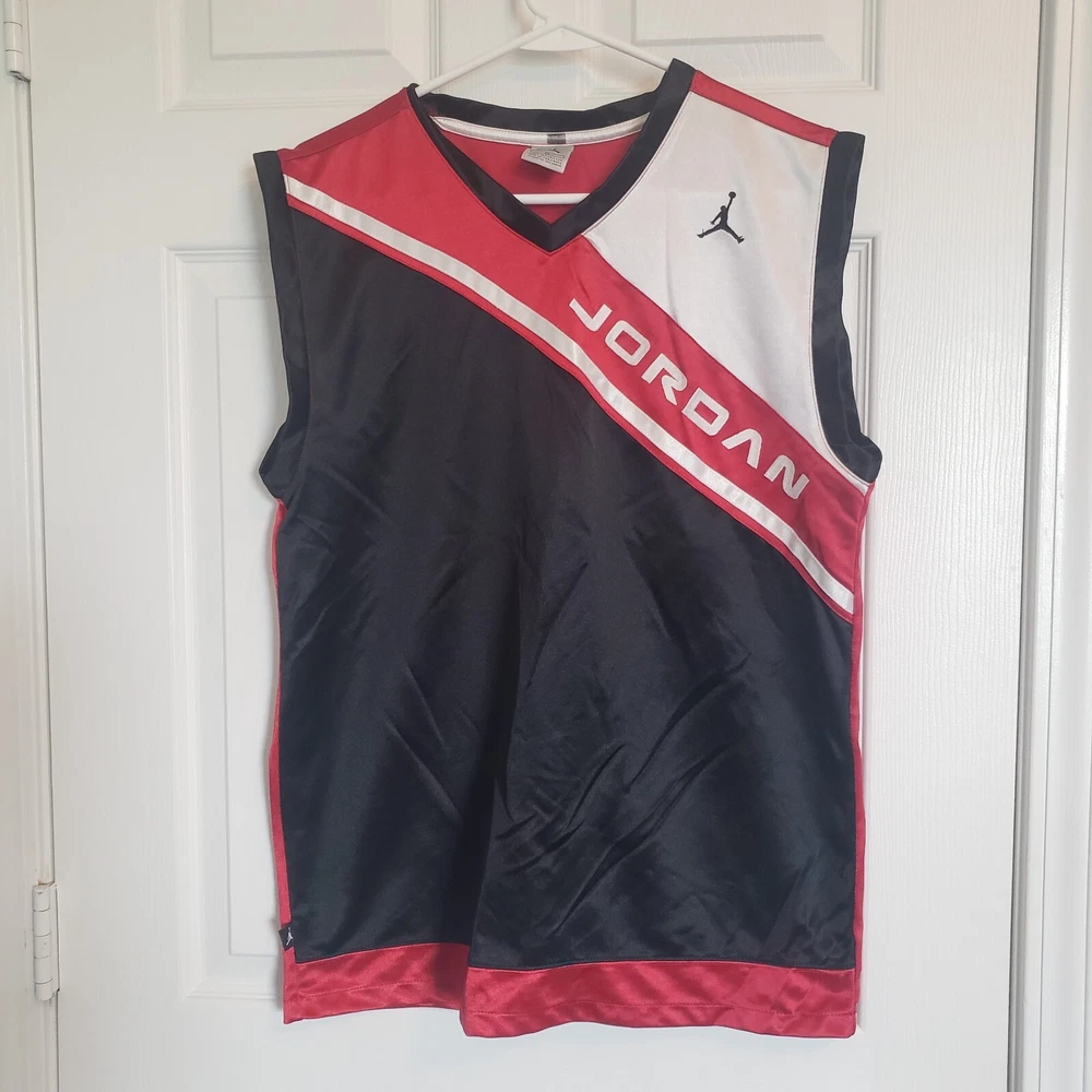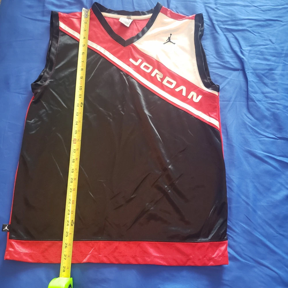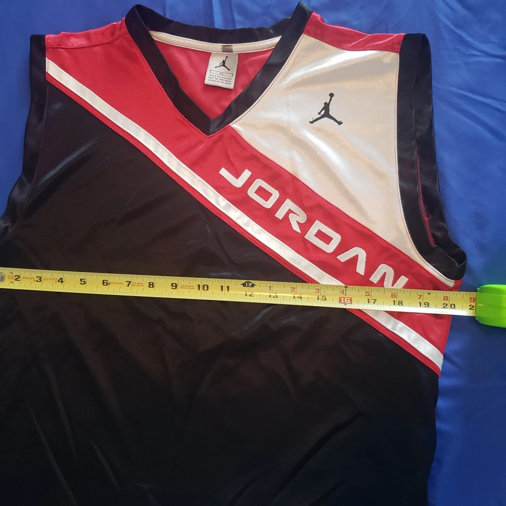 VTG Air Jordan Jersey Tank Top Mens Size XL, Satin colorblock with each section separately stitched. Sleeveless. Logos are embroidered not stamped. Product tag indicates manufacture was in Feb 1997. Excellent condition. Returns accepted - buyer pays return shipping.