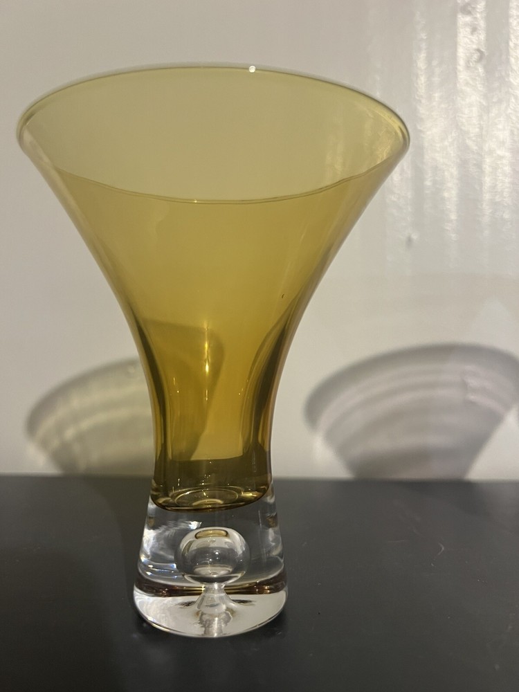 The VTG Artland Celebration set includes 4 jewel tone martini or wine glasses with a unique bubble base design. This glassware set is perfect for all occasions and features a celebrity theme, making it a stylish and eye-catching addition to any home bar or entertaining setup. Made of high-quality glass, these wine glasses are designed by Artland and are sure to impress guests with their vibrant colors and elegant design.Preowned
