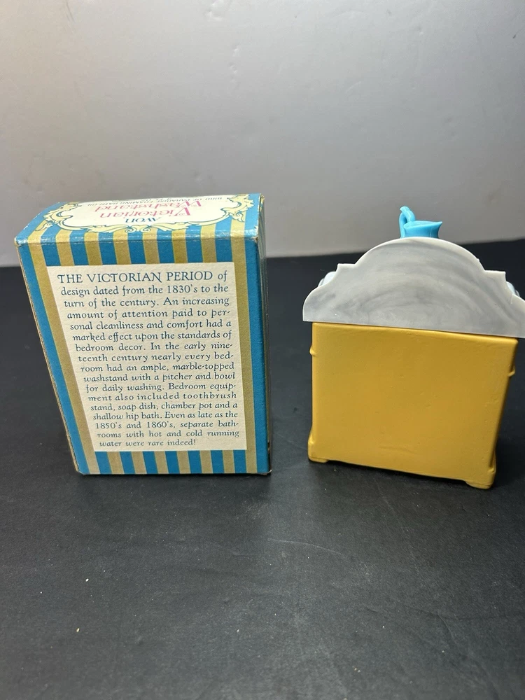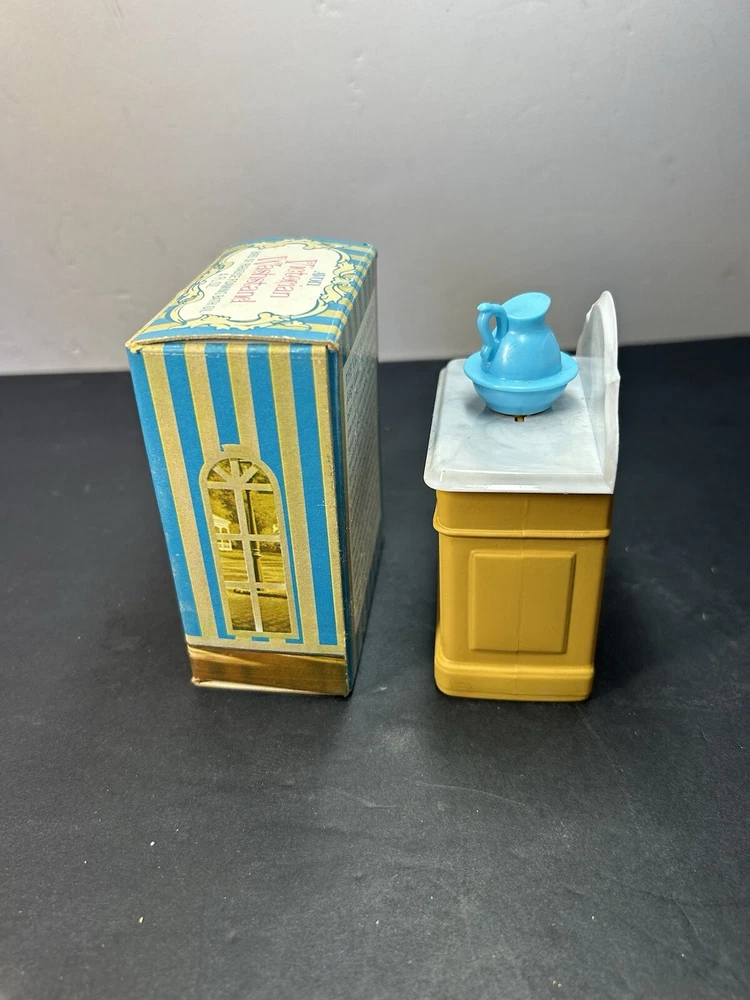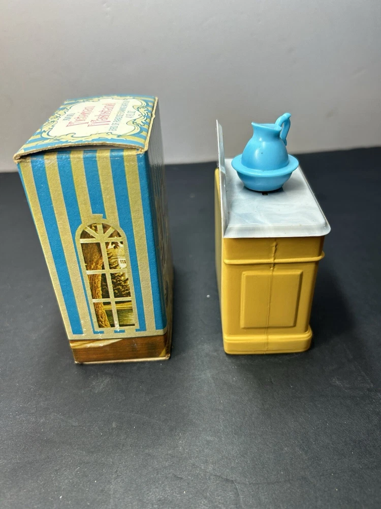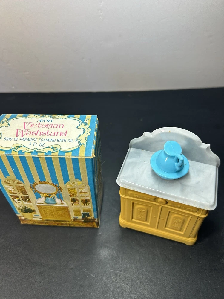 This Avon Victorian Wash Stand is a charming addition to any room. Its hand-blown glass and multicolor design make it a unique piece that is sure to catch the eye. Measuring at 4 inches in height and 3 inches in width, this small washboard is perfect for all occasions and suitable for any furniture setup. The washboard features an oiled finish and comes in its original packaging. It is an original Avon product from the late 20th century and does not require any additional parts. Clean it with a damp cloth for long-lasting beauty. This item weighs 10 oz and has a boxed theme, making it a great addition to any collection or gift for a loved one.