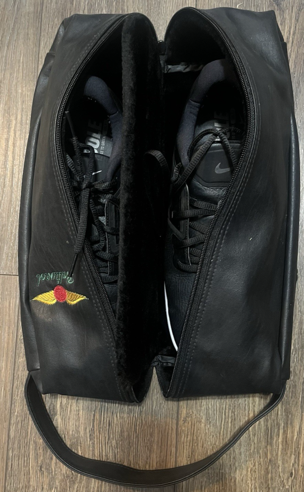The Baltusrol Golf Club Embroidered Black Faux Leather Plush Lined Shoe Transit Bag is a stylish and practical travel bag designed specifically for golf enthusiasts. Featuring two dividers, a zip closure, and a medium size, this bag is perfect for organizing and transporting your golf clubs in style. Made of faux leather with plush lining, it offers both durability and comfort. The black color and sport-themed design make it a sleek choice for golf fans, while the carry handle ensures easy transportation. Representing the Baltusrol team, this bag is a must-have for any golfer looking for a high-quality and personalized accessory.