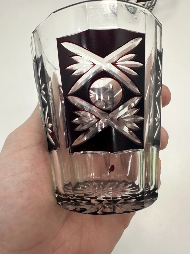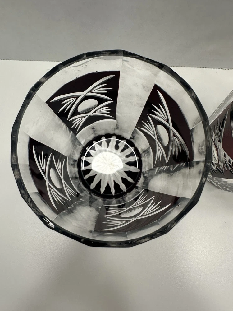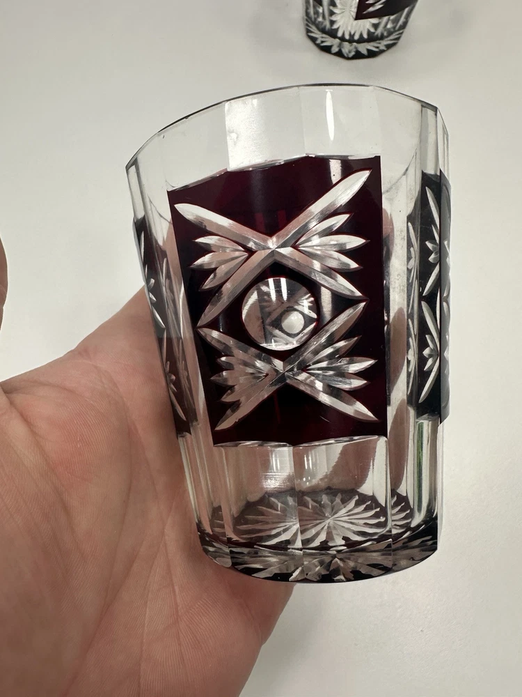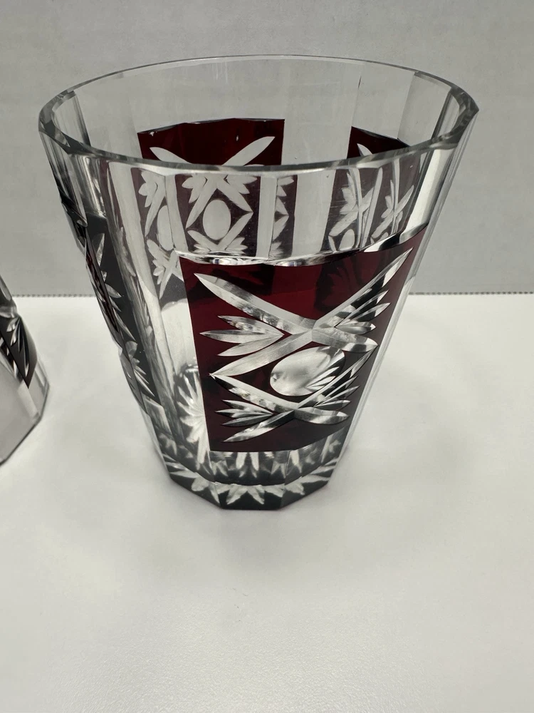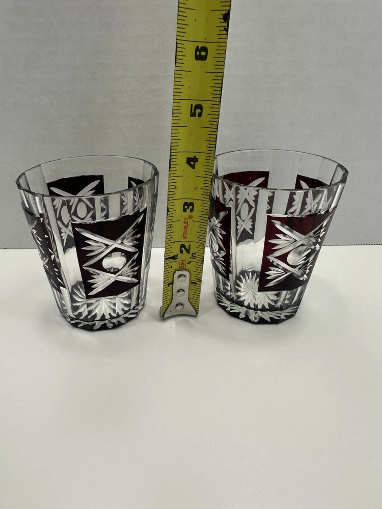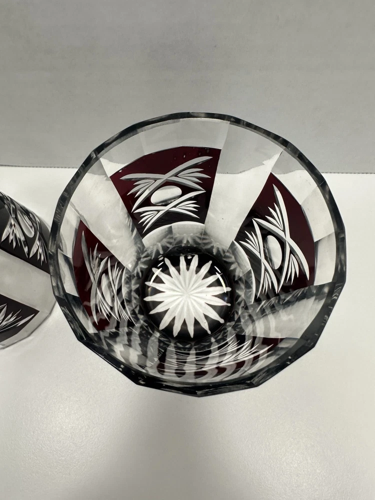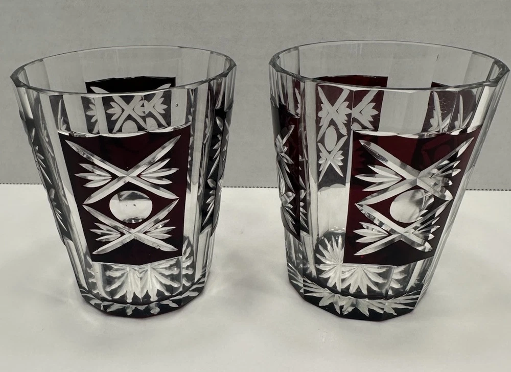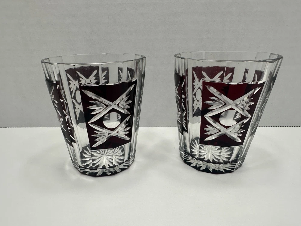 VTG Bohemian Ruby Red Cut To Clear Style Glasses Set Of 2
