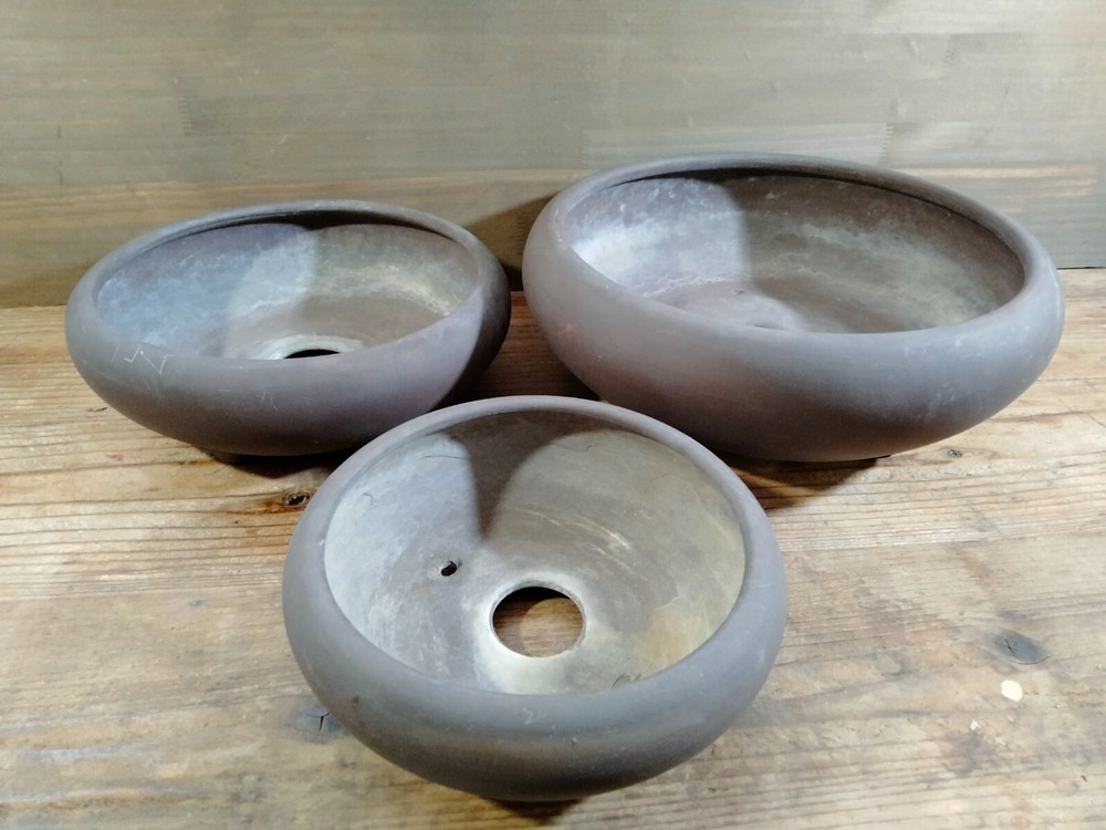 Bonsai Tree Pots Unglazed Round Set of 3 Dia.Approx 12.2 in / 31 cm Medium Size Description Shipping from JAPAN. Items from about 50 to 60 years ago.s Approximate Size Small: 19.5 cm × 7.5 cm (7.7 in × 3 in) Medium: 25 cm × 8.5 cm (9.8 in × 3.3 in) Large (Diameter): 31 cm × 11.5 cm (12.2 in × 4.5 in) Returns We accept returns within 30 days of delivery, but please note that the customer is responsible for the cost of return shipping. Our return policy guarantees 100% satisfaction. If you receive an item that is significantly different from its description on our website, please contact us by email to request a refund. In such cases, you will need to return the item to us before we can process your refund. International Buyers - Please Note: Please note that import duties, taxes, and other charges are not included in the item price or shipping cost. These charges are the buyer's responsibility. We kindly advise you to check with your country's customs office to determine what these additional costs will be before placing a bid or making a purchase. Please be aware that such charges are typically collected by the delivering freight (shipping) company or when you pick up the item. Therefore, please do not mistake them for additional shipping charges. We comply with all applicable US and international laws and regulations regarding the declared value of merchandise. Please note that we cannot mark items as "gifts" or declare a lower value than their actual price. Such practices are prohibited by law, and we are committed to adhering to ethical and legal standards. If you cancel your order, we reserve the right to charge a cancellation fee. If there is an additional charge for shipping to your remote address, we will inform you and charge accordingly. We appreciate your understanding and cooperation, and we are happy to assist you with any questions or concerns you may have about international shipping and customs regulations. Thank you for your interest in our products and services.