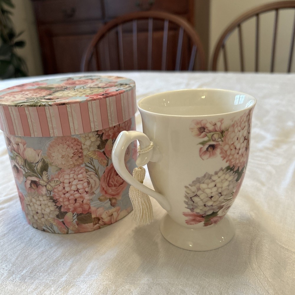 VTG Brivogue Victorian Style Fine Porcelain Tea Cup and Gift Box Hydrangea This beautiful gift set from Brivogue is perfect for any occasion. The delicate porcelain tea cup and matching gift box are adorned with a lovely hydrangea design, adding a touch of Victorian style to your tea time. The set is perfect for adult recipients and is suitable for all occasions. Crafted in China, this vintage set is sure to impress. The set includes a tea cup and gift box, making it an ideal gift for women who appreciate the finer things in life. The color of the set is pink, which adds a touch of elegance to any tea time. This set is perfect for those who love antique and vintage items and is sure to be a cherished addition to any collection.