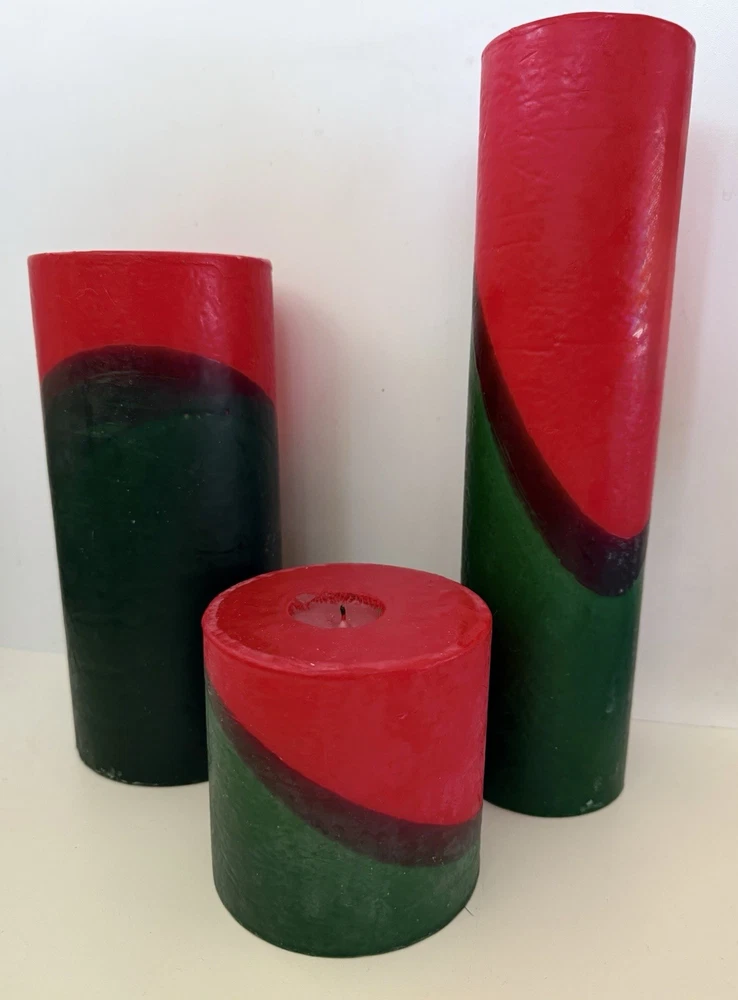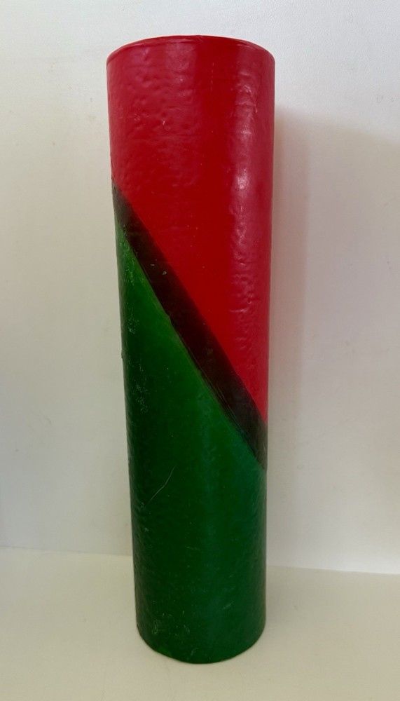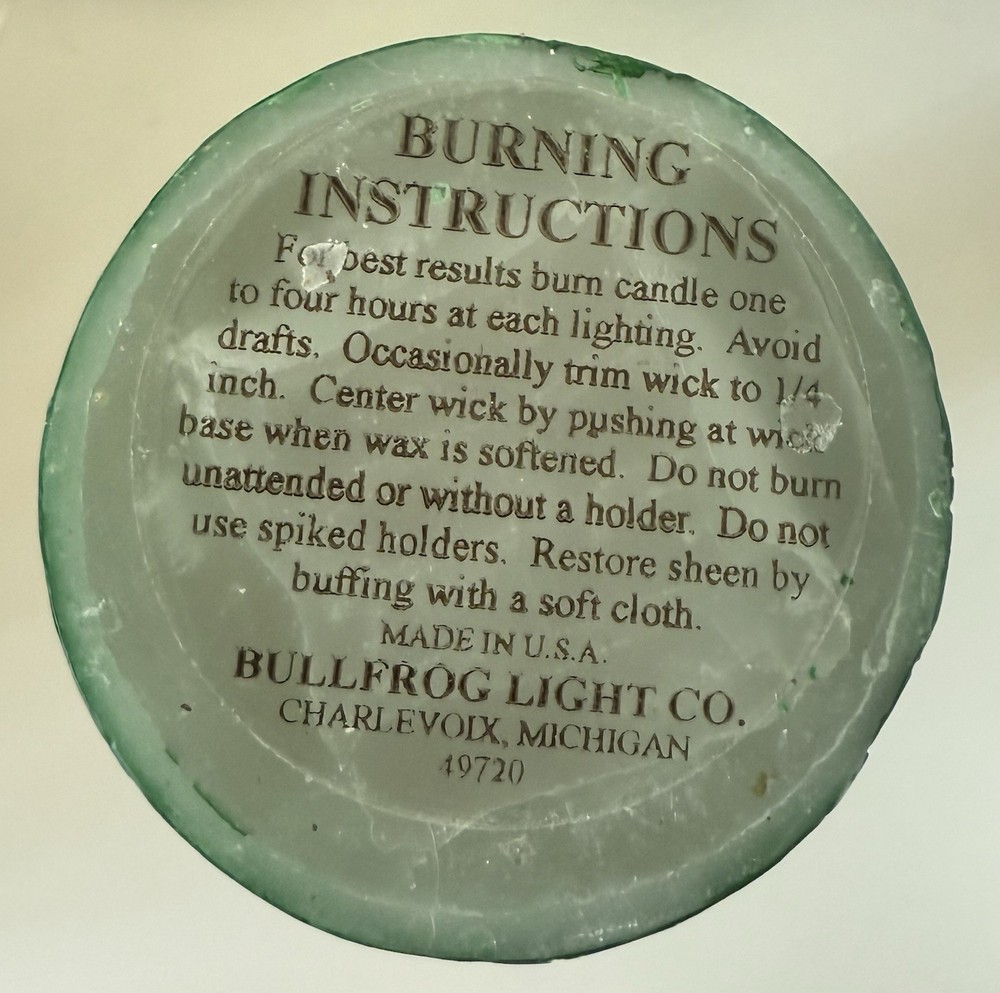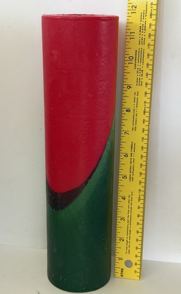Vintage pillar candle from Bullfrog Light Co. Charlevoix MI. The vibrant red & green swirl design and make it the perfect addition to any room. Made from high-quality wax and crafted by hand, this 12” tall candle emits a warm glow that will brighten up your space. The unscented candle is perfect for those who prefer a subtle and relaxing atmosphere. It has been burned once. In very good condition, no wrapping. Refer to photos. I’m listing two other Bullfrog candles of this same design. I can combine shipping if you’re interested in more than one. Please request an invoice before payment is made if purchasing more than one so I can adjust the postage. Thank you. You can see them all in the last photo. This listing is ONLY for the 12” candle.
