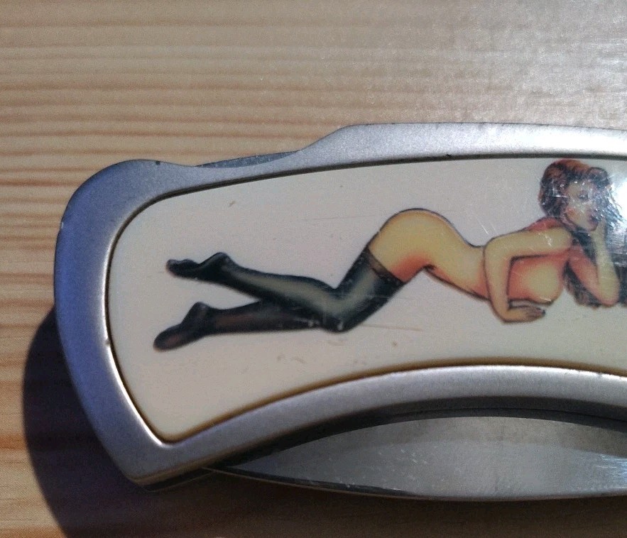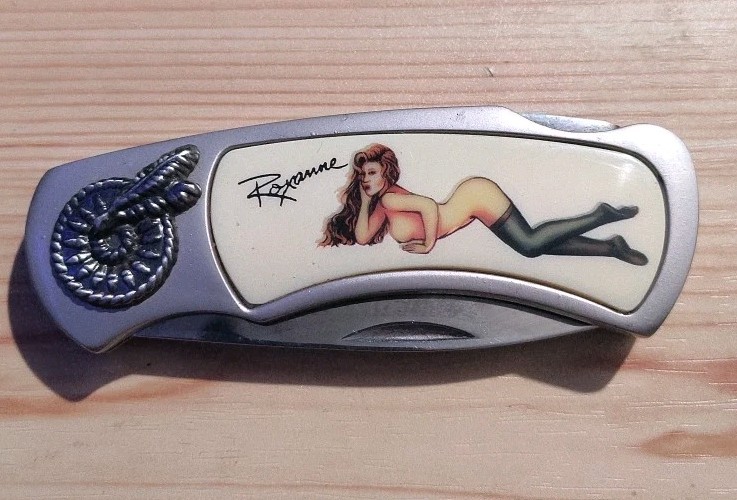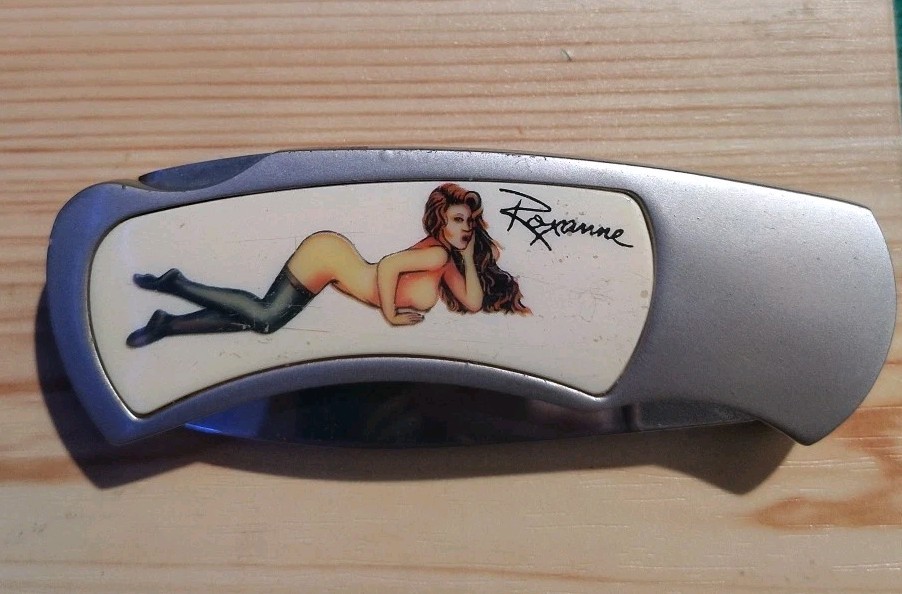 Pocket knife pin-up girl named Roxanne, what a delight!