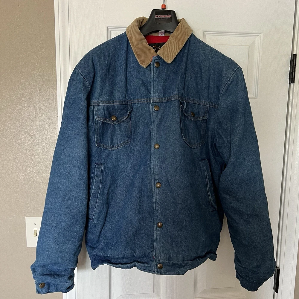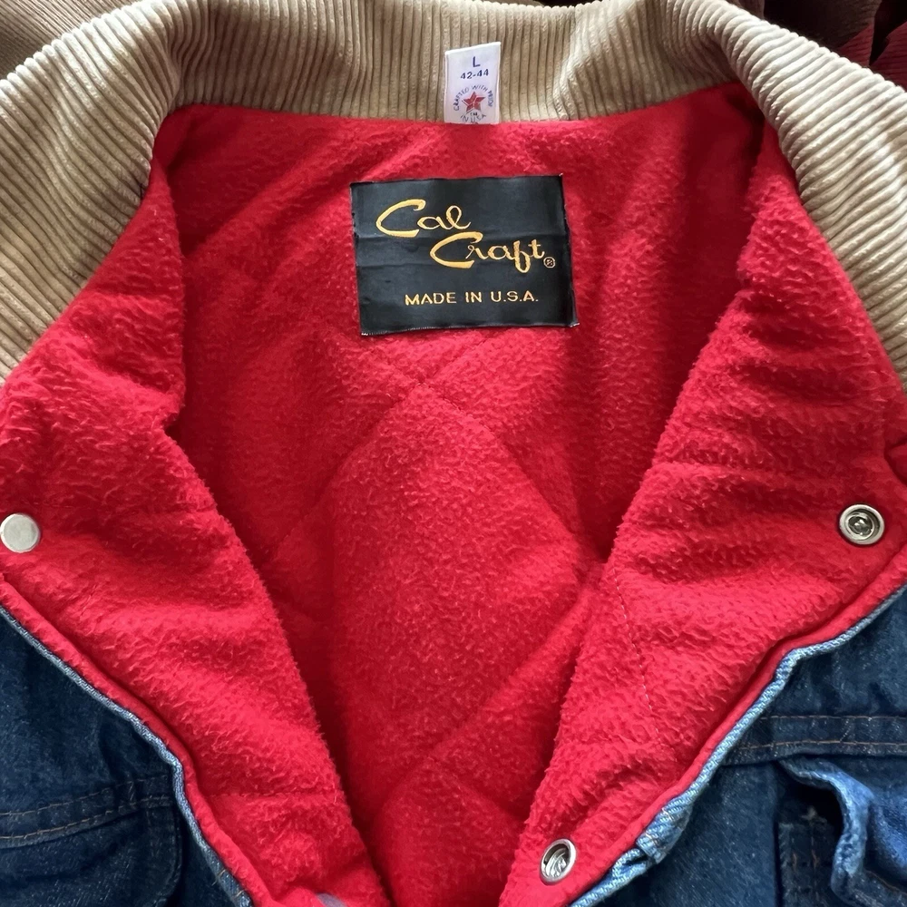 VTG Cal Craft Men Corduroy Collar Jacket Denim Fleece Lined Size L 42-44