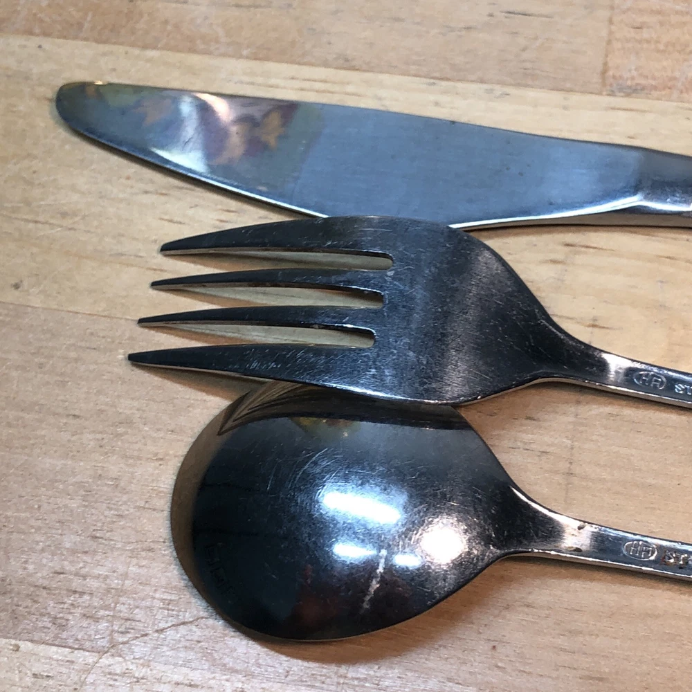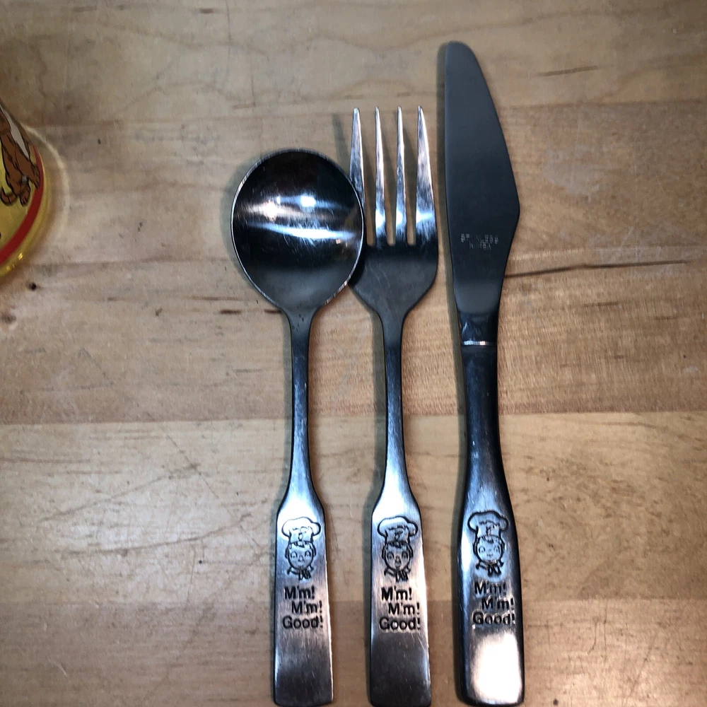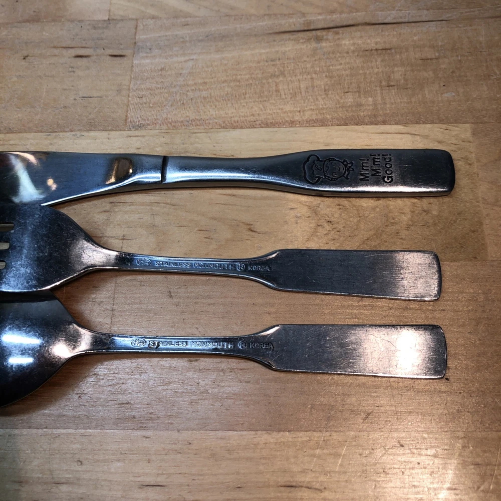 Seller Notes:“used, but no damage or issues”Handle Pattern:SolidCountry/Region of Manufacture:Korea, Republic ofColor:SilverSet Includes:Fork, Knife, Spoon, cupBrand:Campbell's SoupMaterial:Stainless SteelType:SetHandle Material:Stainless Steel