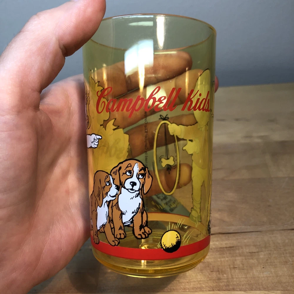 VTG Campbell's Soup 3 Piece set of Spoon, Fork & Knife with yellow tumbler cup