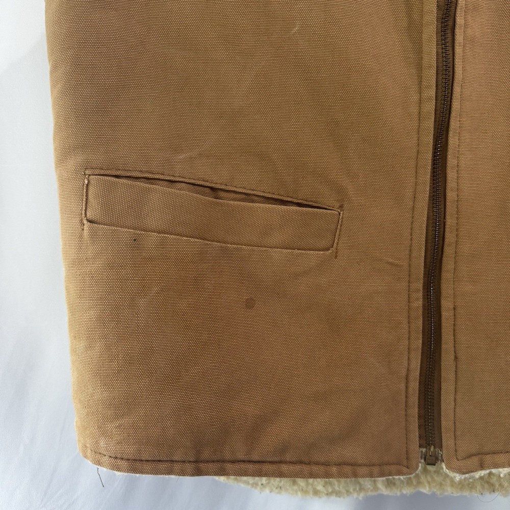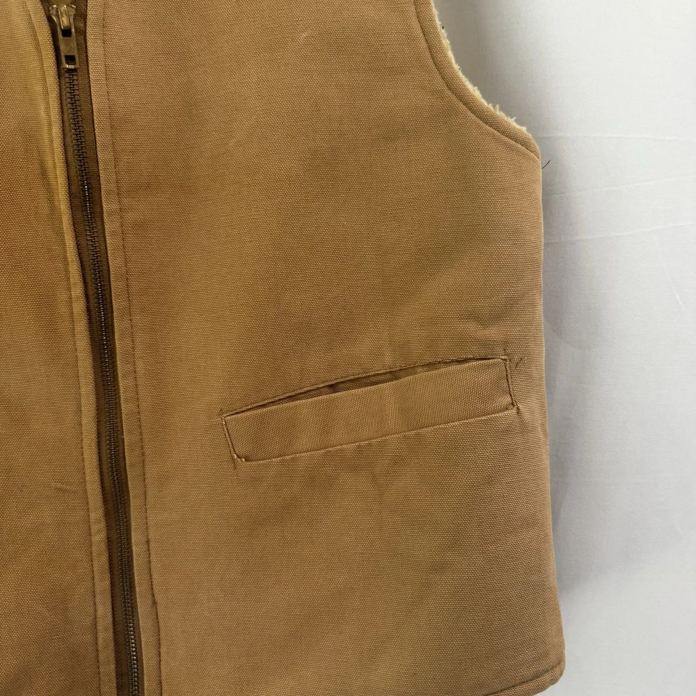 The VTG Carhartt Medium Full Zip Sherpa Lined Field Vest Jacket in brown is a rare vintage piece from the 80s or 90s. Made with a cotton outer shell and lined with polyester, this vest features a solid color pattern, zipper accents, and is designed for outdoor activities like walking, hunting, and hiking. With a bomber jacket style and themes of nature, biker, motorcycle, and retro, this Carhartt vest is both functional and stylish, perfect for a dad or someone with a love for the wilderness. Size: Medium Width: 21" Length: 24" Condition: Pre-owned Please note: Width is the armpit to armpit measurement. Length is measured from the shoulder to bottom hem. All measurements were taken with the item laying flat. Ships from a smoke free home! Please see all photos for the exact item condition. Thanks for checking out my store! All items are shipped within two business days. A-62