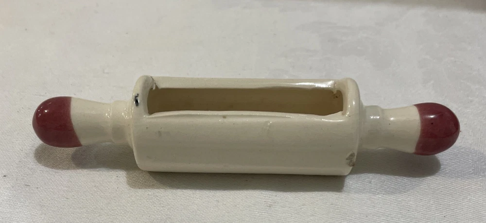 This little rolling pin replica is a cute trinket holder. A great place to drop rings when rolling out dough. Some have been listed as recipe holders but this particular one is too small to hold a recipe card or business card. Too small to be a planter. Paint is in good condition, looks to be hand painted. Check item specifics for size. Let me know If you have questions or need more pictures. All items shipped via USPS Ground Advantage. I will combine shipping to save you money. A note from the seller: I am not a factory direct retailer. I am retired and this is simply a hobby for me. I source my items from estate sales and auctions. The item you are buying is the exact item in the pictures. Please use those to help you assess quality and further description. I try my best to provide an accurate description and photograph any known flaws. I do combine shipping so checkout my other auctions. I prefer no returns, but if there is a problem, please contact me for a possible solution. I am reasonable and humbly expect the same of you. Thank you for looking and I hope you have an exceptional day! Geo1 A3R