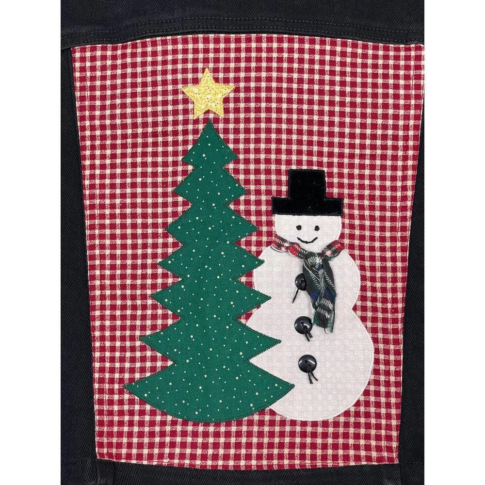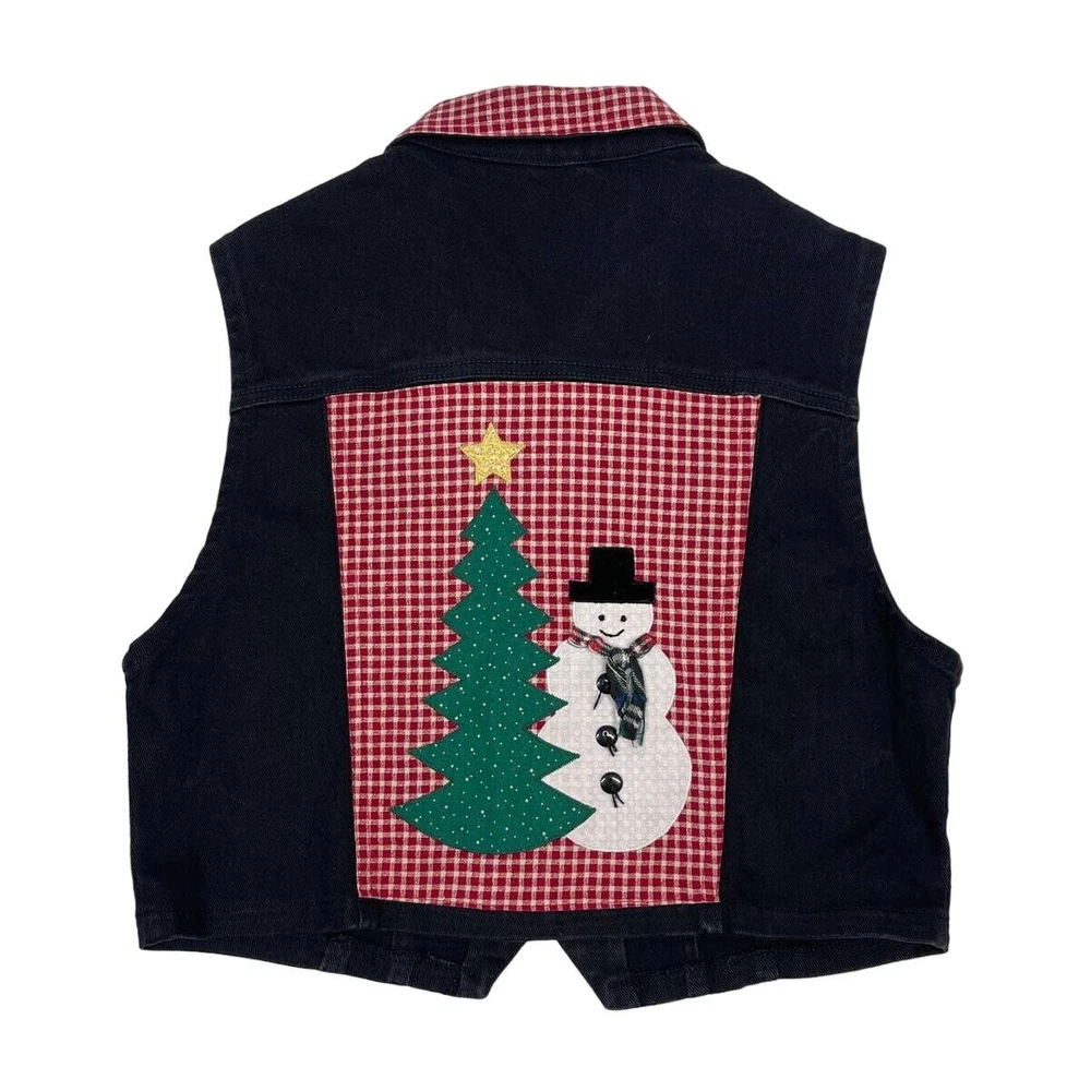 VTG Christmas Black Denim Red Check Collar Patch Snowman & Tree Back Vest Large Size: Large Style: Vest Color: Black Excellent Preloved Condition This vintage vest is definitely back in style. This would be so cute over a long sleeve shirt with some leggings Or boots. I could also see this over a cute dress with some boots. A great unique piece for your vintage collection. Vintage sizing runs small. Approximate flat lay measurements Pit to pit 19in Length 18in
