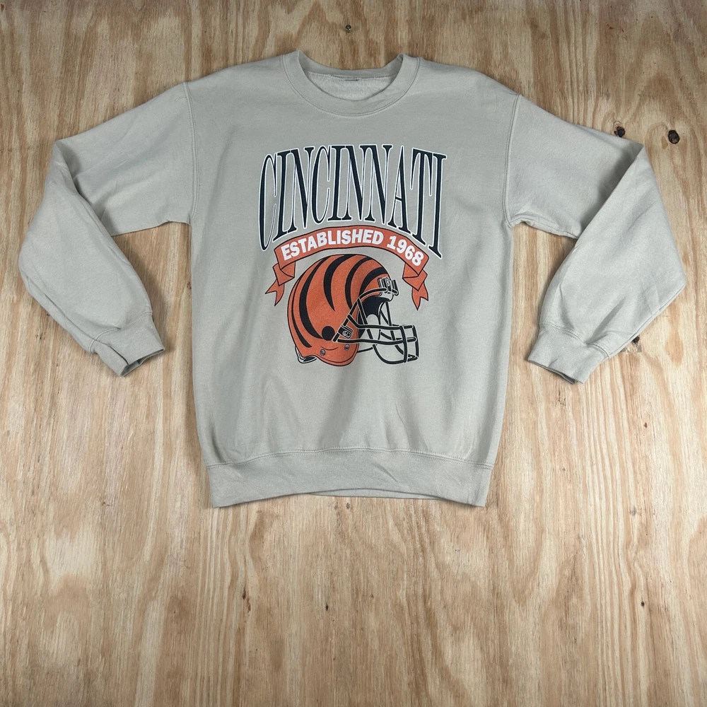 Show off your love for the Cincinnati Bengals with this vintage NFL football sweatshirt. The gray color and retro design make it the perfect addition to any fan's collection. This unofficially licensed sweatshirt features a 15 oz capacity and is made for men's size M. The sweatshirt is perfect for regular season games and is great for wearing to the event or just around town. The design showcases the team's name and logo, making it a great way to show your support. Get this unique piece of fan apparel today and add it to your collection. SKU: PK-36-66