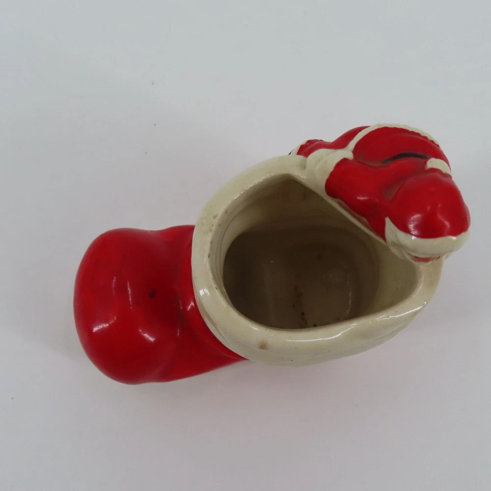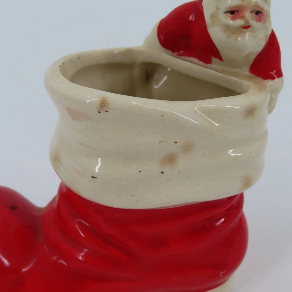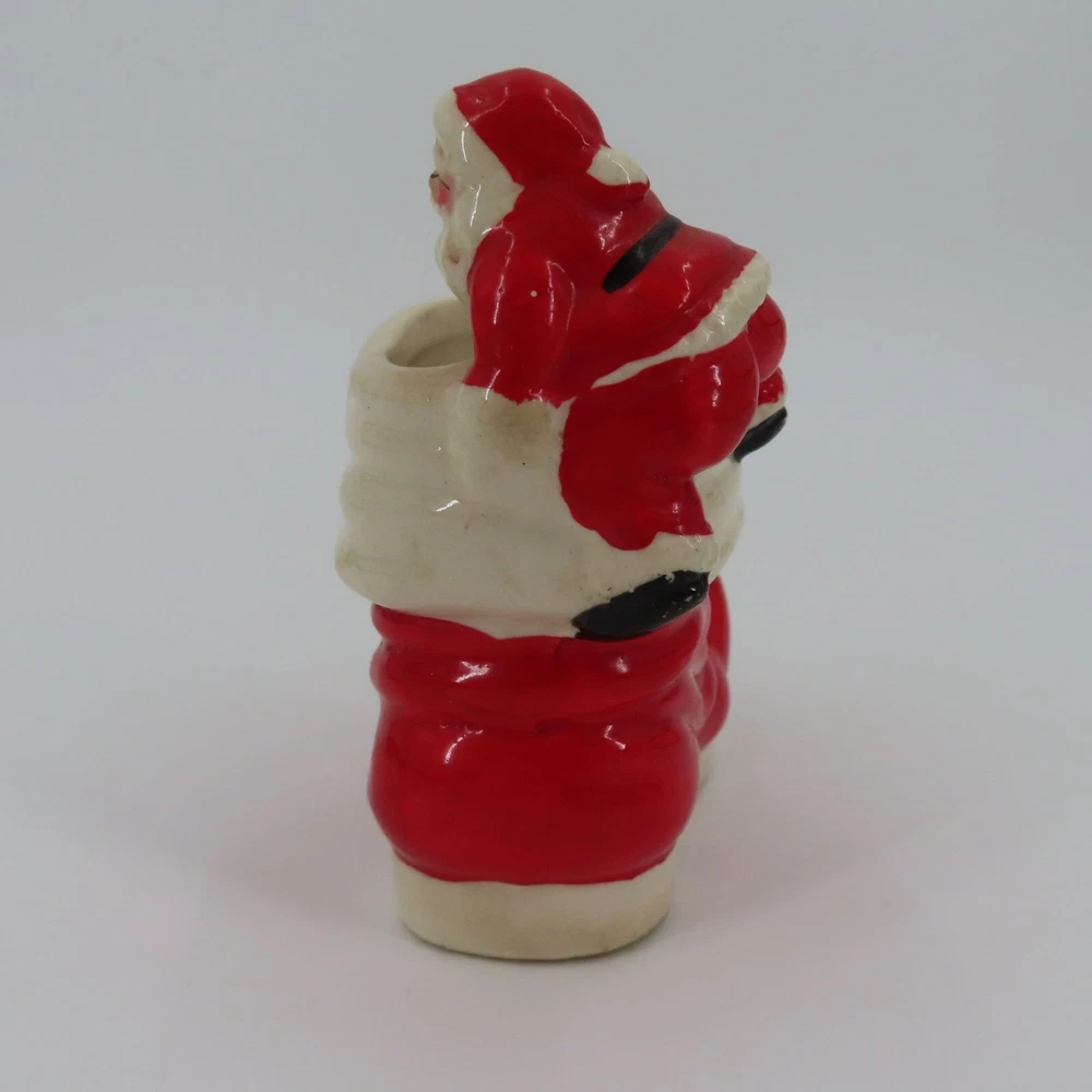 Vintage ceramic booth with climbing Santa Claus Stamped something on base but cannot make out the words Width: 3.5" Height: 3.5" **measurements are approximate, taken with item laying flat Condition: used, surface wear- see photos, smoke free home Please review all photos closely as these will be the best description of the item. Thank you for shopping!