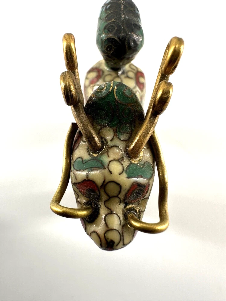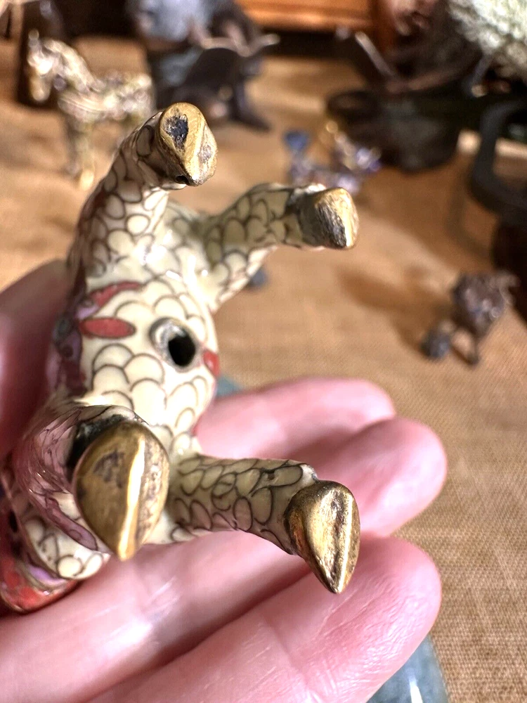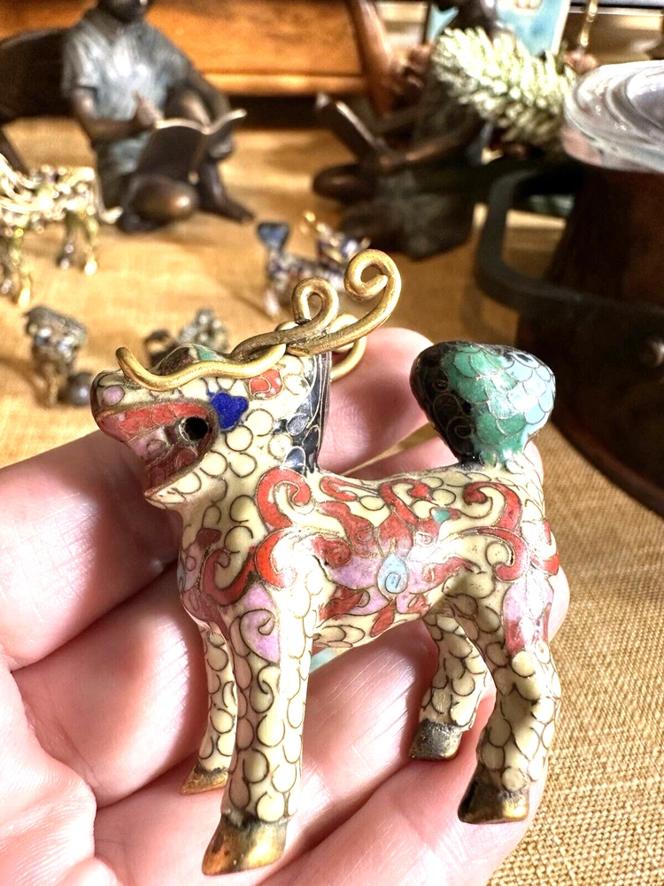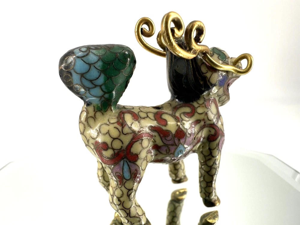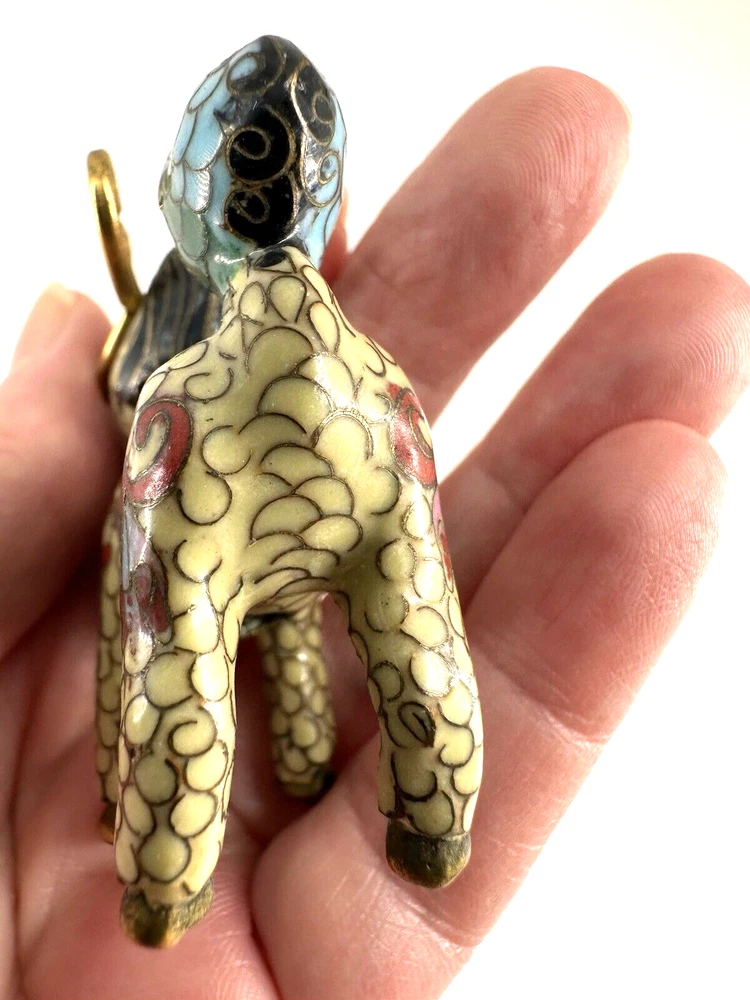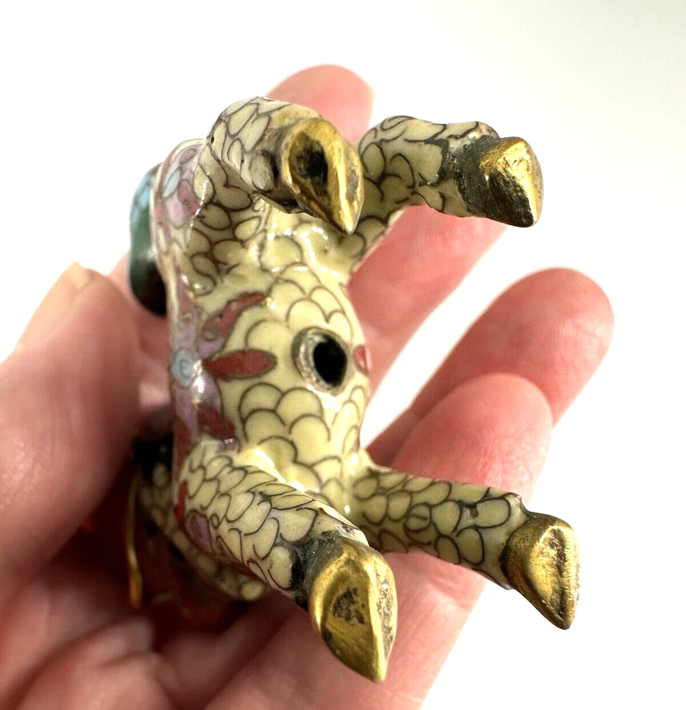 SEE VIDEO to appreciate this very vintage (believe is antique) Cloisonne fu / foo dog. This vintage bronze / brass lion beast statue is a Cloisonne Guardian Foo Dog, standing at 2 inches tall. Hand painted in a bronze color, this imperial guardian lion, also known as a shishi or Foo Dog, originates from China and dates back to the early to mid 20th century. The intricate design and craftsmanship of this Asian lion make it a unique and decorative piece for those interested in Asian antiques and animal-themed decor. It is such a great find -- for you. In great vintage condition. (Note: The holes within cloisonne pieces is where they enter to complete the detailing of the piece. I really love this fu dog -- and I am sure you will too! You may see other items in the background of the pictures, as well. If you are new here, these items will be listed either this week or next week. So, this gives you a sneak peak of what is coming up next. :) There are a couple of fu dogs that will be listed next week -- if you are a collector. Also, if you are a collector of cloisonne in itself -- I just listed a small horse, which too is gorgeous. Here is my Ebay Shop: YouBeYou LLC If you have any questions even after you have purchased the item --- I am here for you to answer any questions that you may have! I strive to work diligently with every buyer to ensure they are a satisfied buyer, so please contact me anytime. This is a pre-owned item and I take great care to accurately describe the item but please see the pictures for full details. While we do our best to list every item in detail, these are vintage and pre-owned items, and some flaws are to be expected. Please see all photos/ video as they are a large part of the description of our items. Items come from a smoke-free environment. Each item is described in accurate detail with multiple measurements and various photos at different angles front and back, side to side, top and bottom. I have additional similar items that I have yet to list that you may be interested in. Feel free to follow my store ( YouBeYou LLC ) to see those when posted. Please see all photos/ video as they are a large part of the description of our items. I strive to make every purchase a pleasant experience. Please feel confidence in you purchase that I'll make every effort to correct any issues that may arise. If used, there are always some signs of wear -- well, because it is used, vintage, or antique. Most items are used -- Each item is inspected for quality. It is very important to us that you have a happy Ebay experience! Thank you for supporting a small business like ours! (Note: pictures may include measurements, and some have a video.)