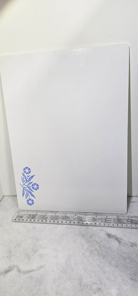 This beauty is a must-have for collectors of this pattern! ****See photos closely for condition. ****There are scratches on a few places along the edges, and when you look closely, tiny dots of paint loss on the back from sitting on a counter top. You'll need to add rubber feet of desired. There are a couple of very small orange stains, possibly rust. I'm disclosing very small issues, as this piece looks spotless at first glance! The cornflower design and white coating on top is almost perfect. I'll be taking extra care and costs to package this item for safe shipping. Recycled packaging used when available. The VTG Corning Blue Corn Flower Counter Saver is a vintage kitchen gadget with a retro design. This 11" x 15" glass counter saver features a floral pattern in white, adding a touch of charm to any kitchen decor. The large, rectangular shape makes it ideal for catching spills or for use as a decorative display. Perfect for collectors or those looking to add a unique piece to their kitchen, this CorningWare item is a rare find. Thanks for looking!