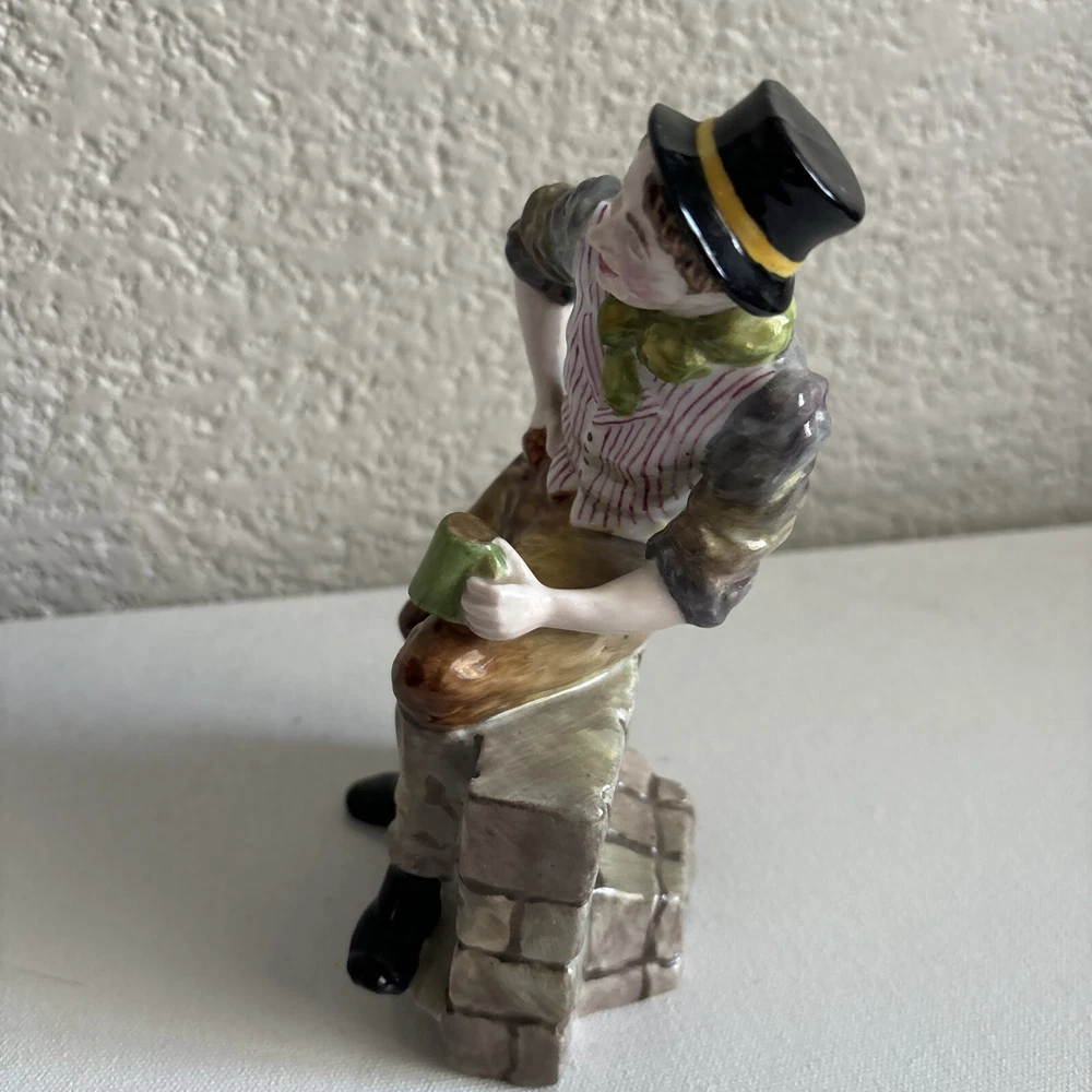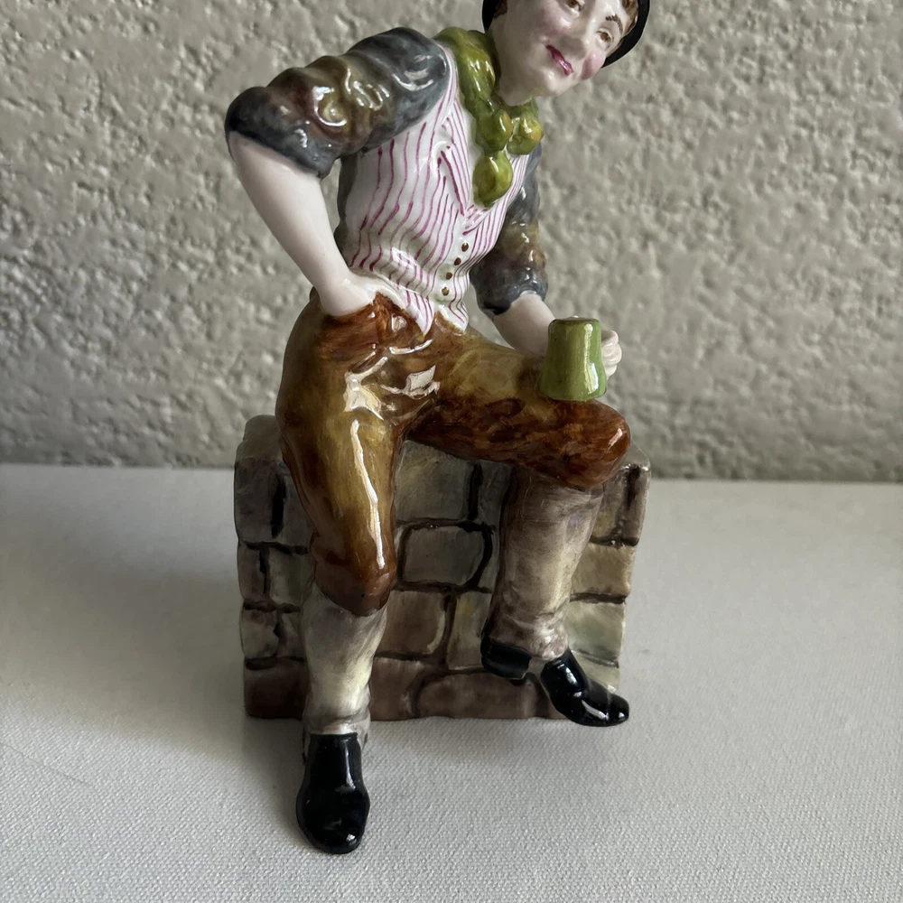 This exquisite figurine from Crown Staffordshire depicts a man on a wall holding a pint. It has been beautifully hand-painted with a high gloss finish, and is made from fine bone china, porcelain and ceramic. The lad with pint figurine is part of a special edition collection and is an original piece from the Georgian era. Measuring 8 inches in height and 3.5 inches in width, this decorative piece is perfect for any collector of antique figurines. It comes in a box for safekeeping and features a printed backstamp. The lad with pint figurine is a charming addition to any home dΓ©cor and a must-have for fans of Charles Dickens.