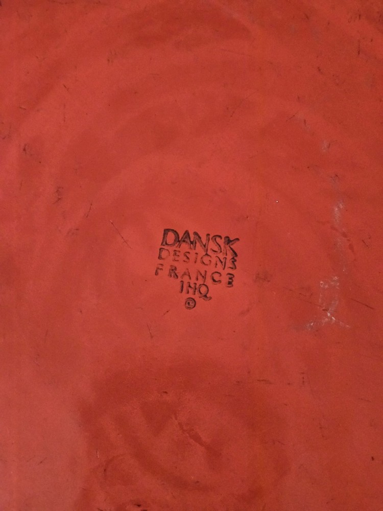 The VTG Dansk Kobenstyle Red Enamel 5 Qt Dutch Oven Casserole Pot is a vintage piece of cookware that hails from France. This two-piece set includes a round Dutch oven with a red enamel finish, along with a matching lid. Suitable for use on both gas and electric ovens, this original collectible piece adds a touch of retro charm to any kitchen.