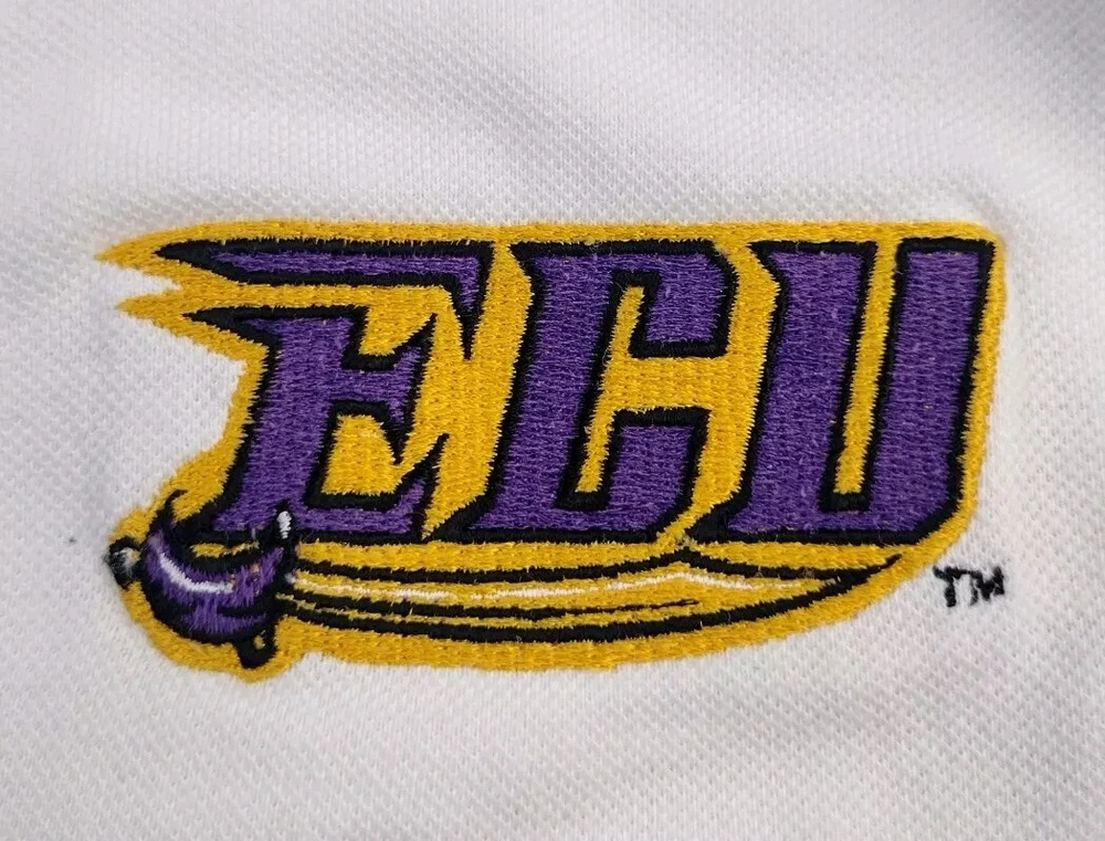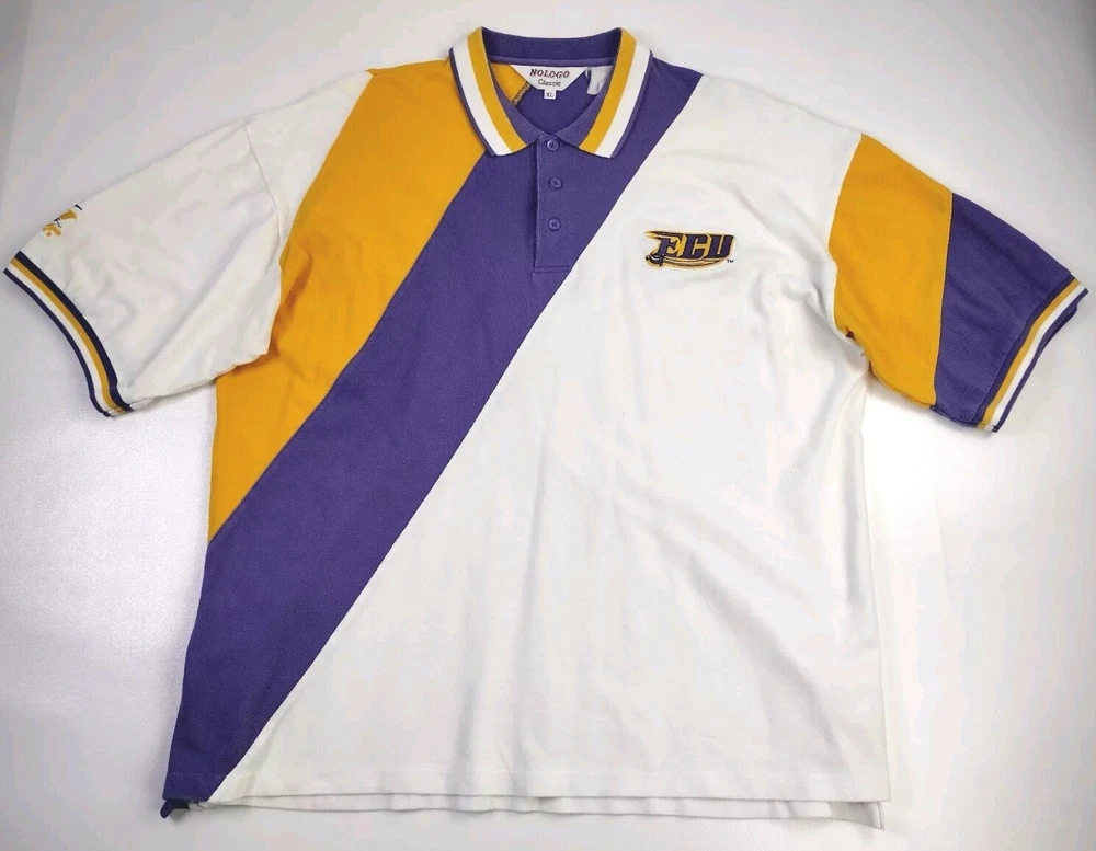 Show your support for the East Carolina University Pirates with this vintage polo shirt. The shirt features a color block design that showcases the team's iconic logo and colors. It's made from high-quality materials and is available in size XL, making it the perfect addition to any fan's collection. Whether you're heading to the game or just want to show off your team spirit, this shirt is the perfect choice. It's designed for men and features the Nologo Classic brand. So why wait? Add this shirt to your collection today and show your support for the East Carolina Pirates!