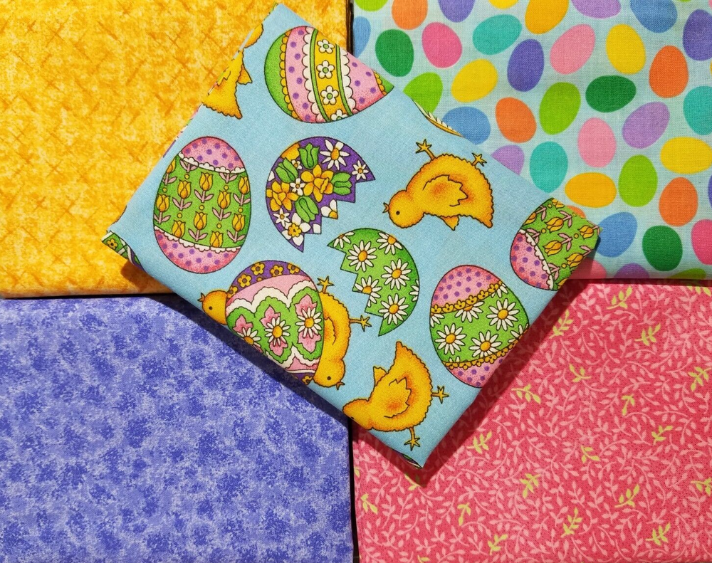 Most all of the fabric I am selling is Vintage and OOP that I bought years ago when I first started sewing and had plans......that life magically interrupted lol. ππ However, they are NEW, and are either on the bolt, or stored appropriately out of light and in totes, drawers or shelved and covered. Smoke free/pet free. Fat Quarters are 21/22"(dependent upon manufacturer) X minimum 18" ***the minimum cut is 18" but will run up to 23" lol, because that's just the way some pieces worked out. I would rather include the extra than end up with a small strip to throw away, and I figure it's always a nice surprise to get a little extra sometimes :) This Listing is for (1) Easter FQ Bundle of 5 ~easter egg and jelly bean prints are Signature Classics ~pink is Fabric Traditions ~yellow and periwinkle blenders are unbranded Fun little bundle of novelty fabrics, great for placemats/tablerunners and all those other holiday crafting and sewing projects. Questions?....please don't hesitate to ask :) Thanks for looking! **I do try and check back once you receive your order, but life does get chaotic sometimes lol, so should there be any questions or concerns, please let me know and I will find a solution. :) SHIP TIME: Orders will ship within 24 hours of payment received unless it's a holiday or a weekend. Orders ship out USPS Ground Advantage--generally takes 3-5 days depending on where you live. I will combine shipping when it exceeds my cost to ship multiple orders. Please ask or use "request total" button before paying so shipping can be adjusted if possible. Or, just pay and I will refund you on excess shipping. I am not making money on shipping lol, the shipping is very close to, if not under what it costs me to ship :)