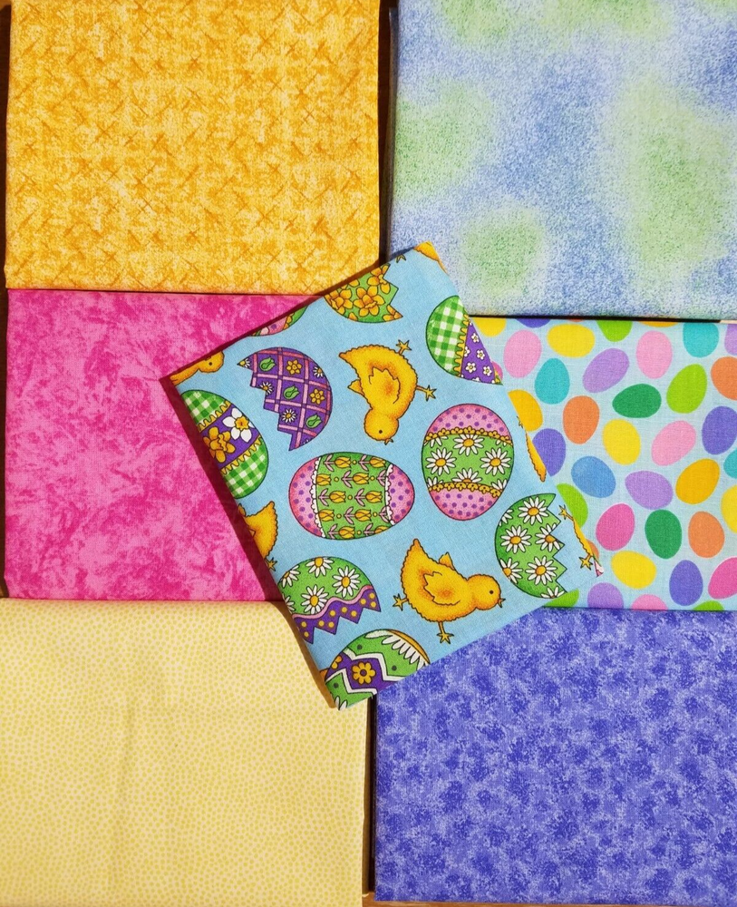 Most all of the fabric I am selling is Vintage and OOP that I bought years ago when I first started sewing and had plans......that life magically interrupted lol. ππ However, they are NEW, and are either on the bolt, or stored appropriately out of light and in totes, drawers or shelved and covered. Smoke free/pet free. Fat Quarters are 21/22"(dependent upon manufacturer) X minimum 18" ***the minimum cut is 18" but will run up to 23" lol, because that's just the way some pieces worked out. I would rather include the extra than end up with a small strip to throw away, and I figure it's always a nice surprise to get a little extra sometimes :) This Listing is for (1) Easter FQ Bundle of 7 ~easter egg and jelly bean prints are Signature Classics ~light yellow dot is Cranston, and is actually 24x22 lol ~pink is Waverly (not vintage) ~periwinkle and dk yellow are unbranded ~blue/green spray is general fabrics This is a great bundle of coordinating fabrics that are perfect for those once a year holiday crafting and sewing projects. Questions?....please don't hesitate to ask :) Thanks for looking! **I do try and check back once you receive your order, but life does get chaotic sometimes lol, so should there be any questions or concerns, please let me know and I will find a solution. :) SHIP TIME: Orders will ship within 24 hours of payment received unless it's a holiday or a weekend. Orders ship out USPS Ground Advantage--generally takes 3-5 days depending on where you live. I will combine shipping when it exceeds my cost to ship multiple orders. Please ask or use "request total" button before paying so shipping can be adjusted if possible. Or, just pay and I will refund you on excess shipping. I am not making money on shipping lol, the shipping is very close to, if not under what it costs me to ship :)