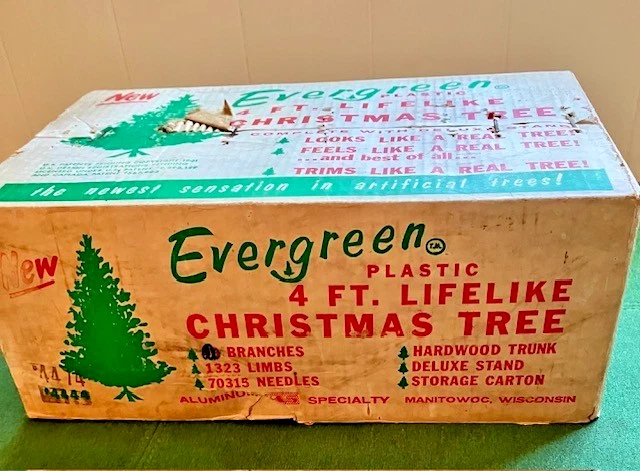 VTG Evergreen Aluminum Christmas Tree 48 Inch Plastic Base Manitowoc WI Model 4474